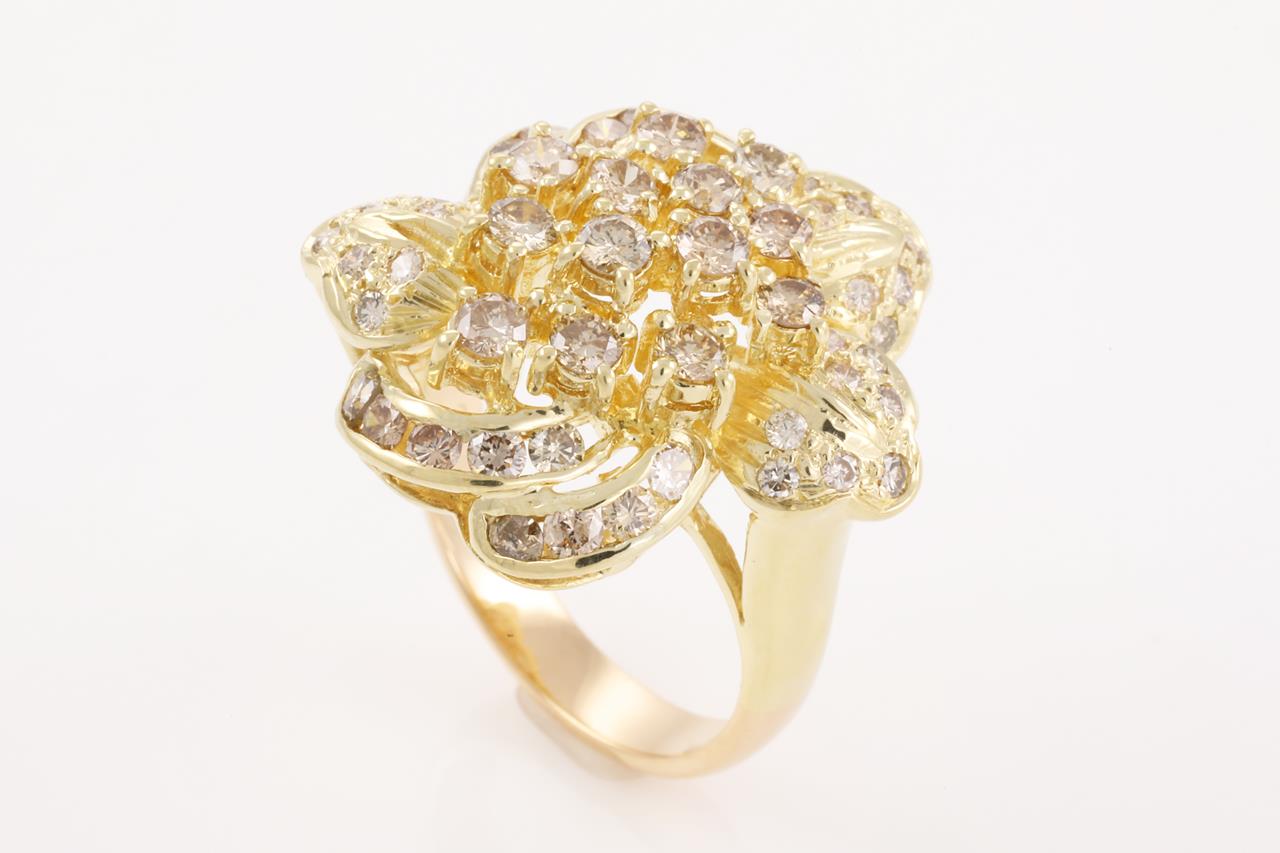 Diamond dress ring with round Diamonds totalling 2.11cts (Estimated grading: TTLB VS-SI). 18ct yellow gold. Ring size P. Weight: 11.7g. (Pre-owned)