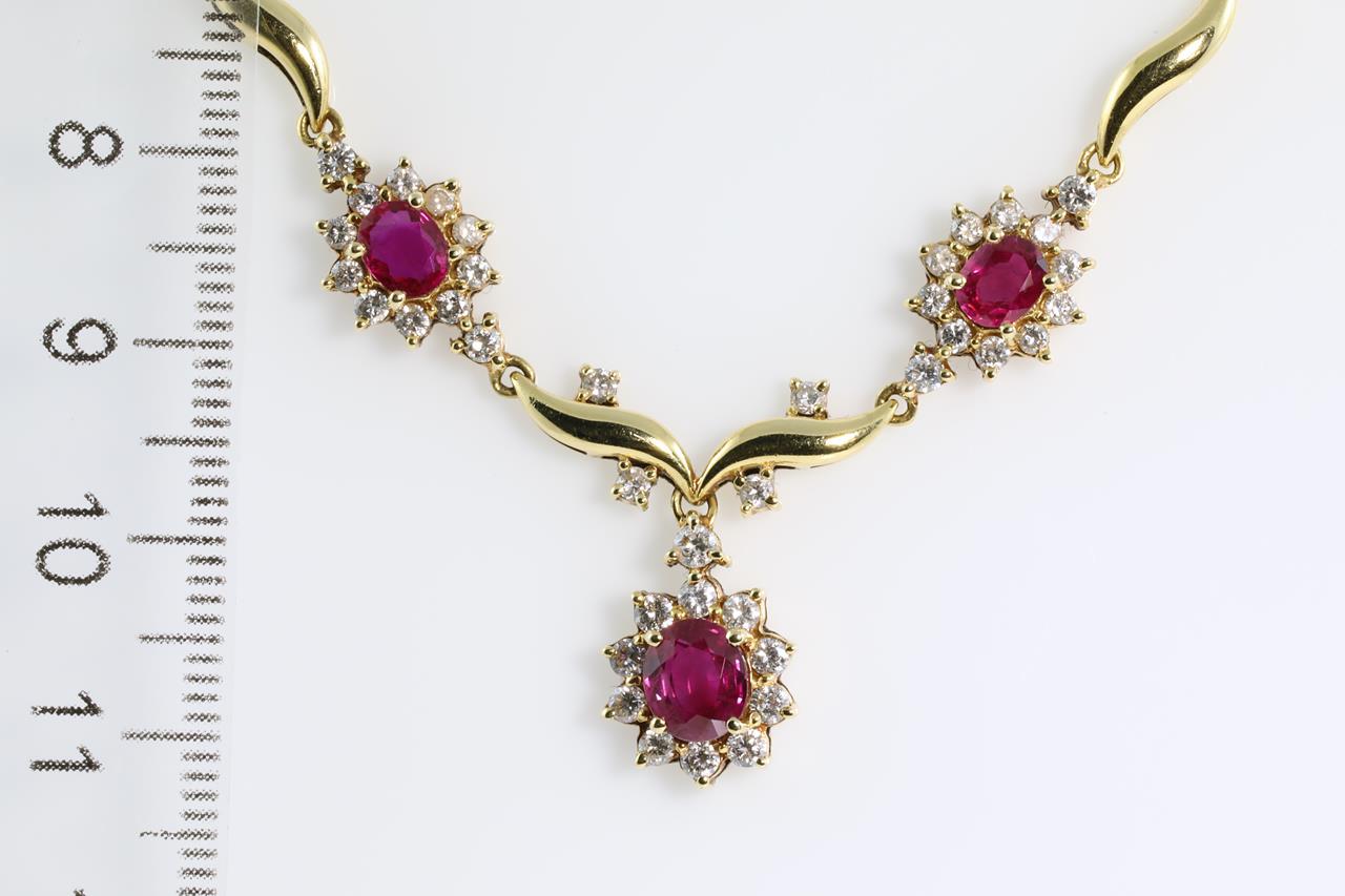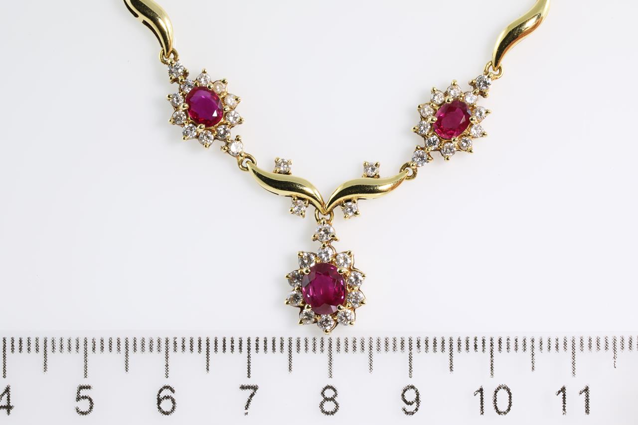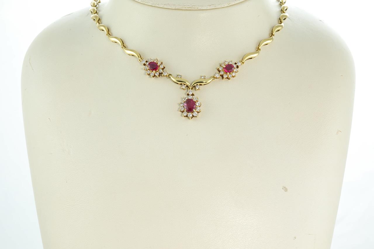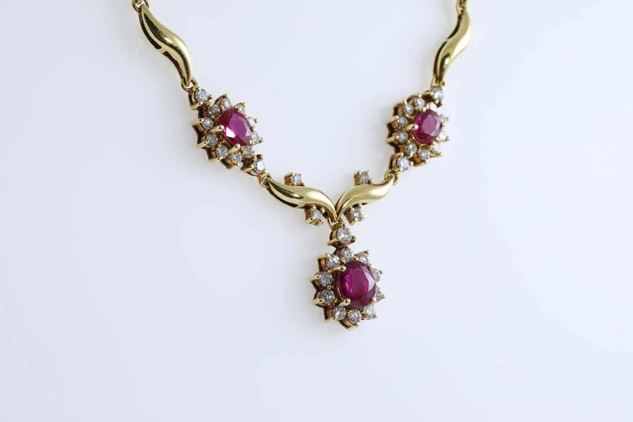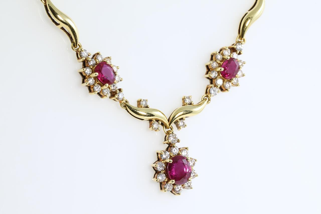 Ruby and Diamond necklace with oval shape Rubies totalling 2.11cts and Diamonds totalling 1.00cts (Estimated grading: H SI) 18ct yellow gold. Length: 41cm. With certificate #413318. Weight: 19.2g (Pre-owned)