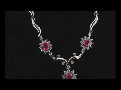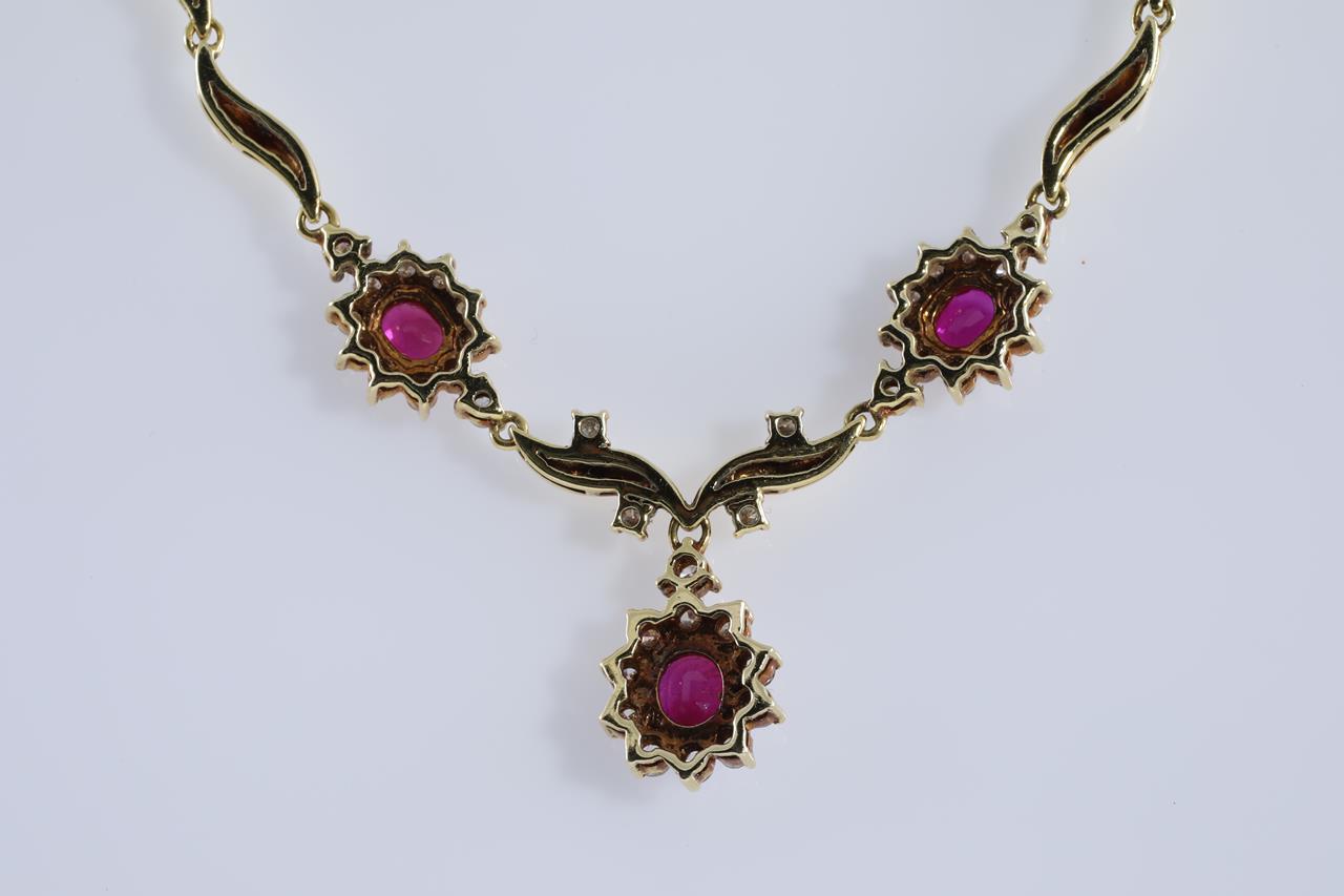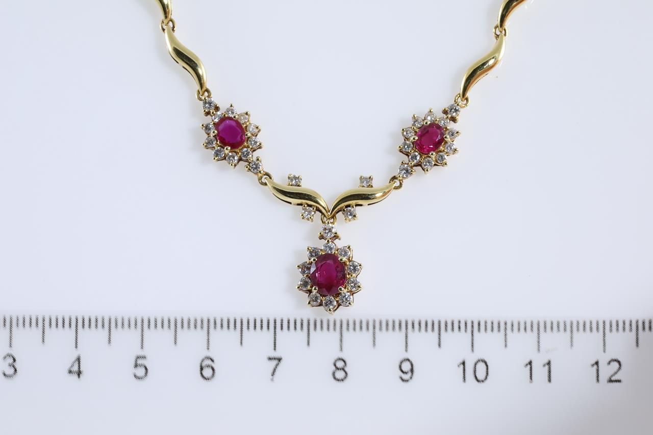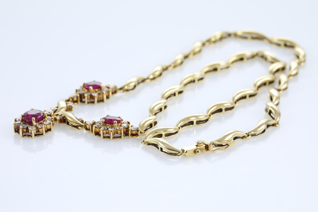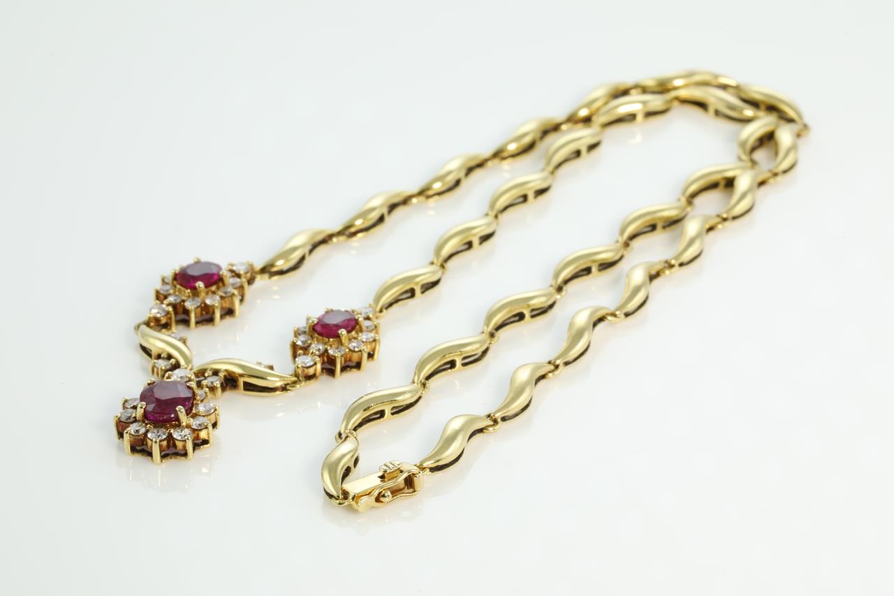 Ruby and Diamond necklace with oval shape Rubies totalling 2.11cts and Diamonds totalling 1.00cts (Estimated grading: H SI) 18ct yellow gold. Length: 41cm. With certificate #413318. Weight: 19.2g (Pre-owned)