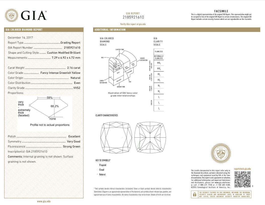 2.16ct Fancy Intense Greenish Yellow VVS2 Diamond GIA