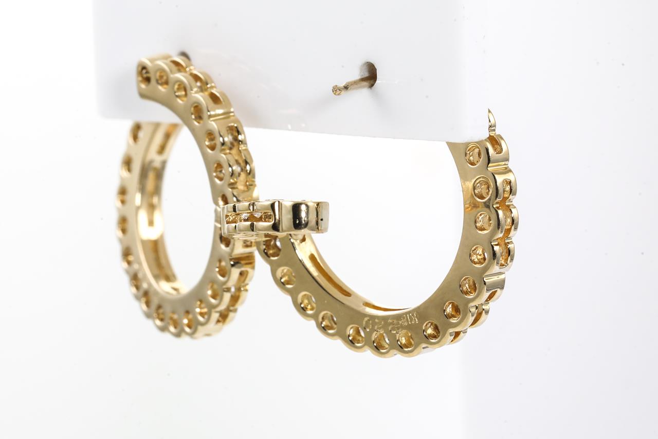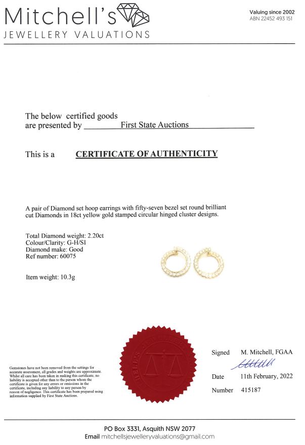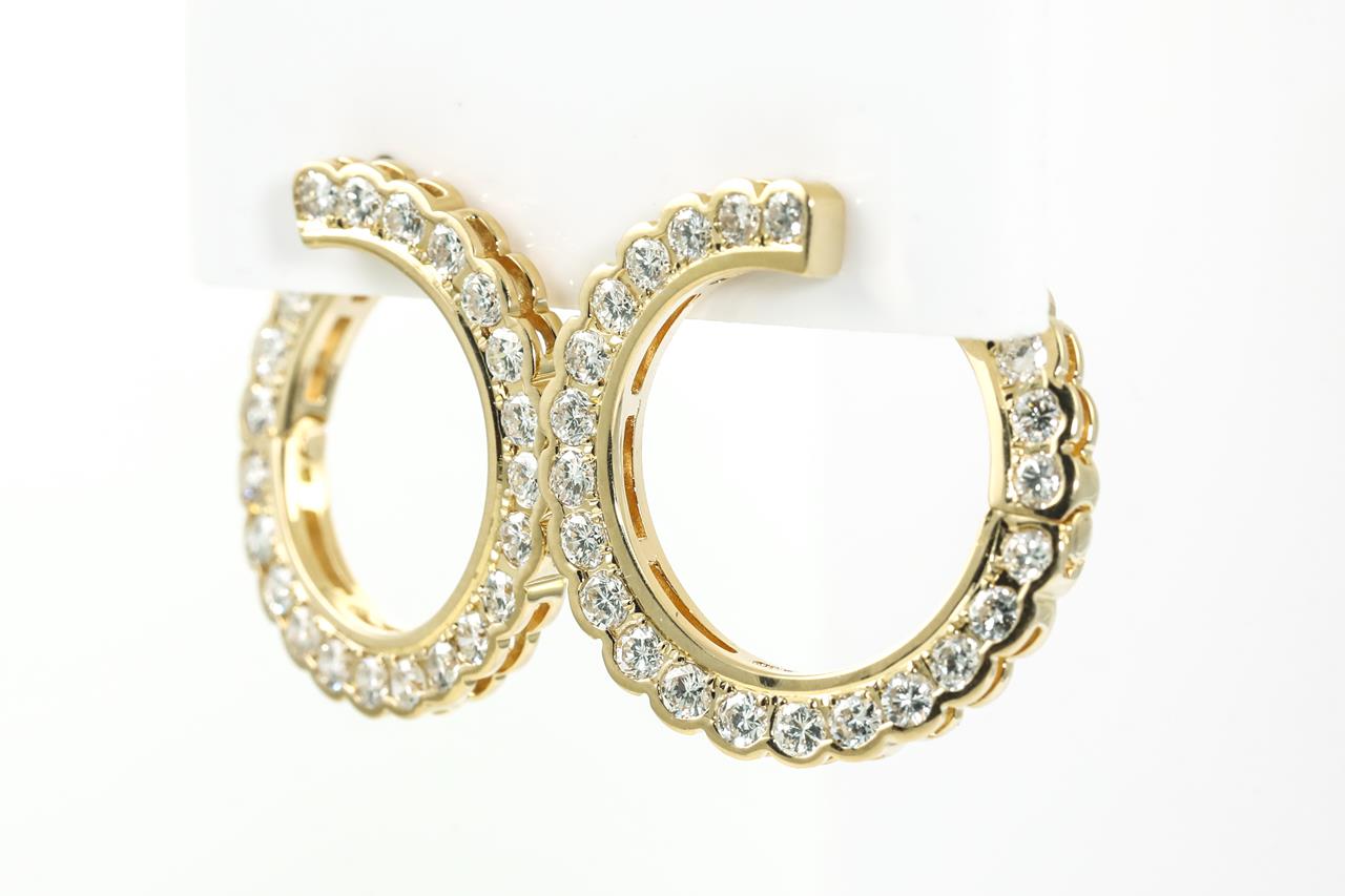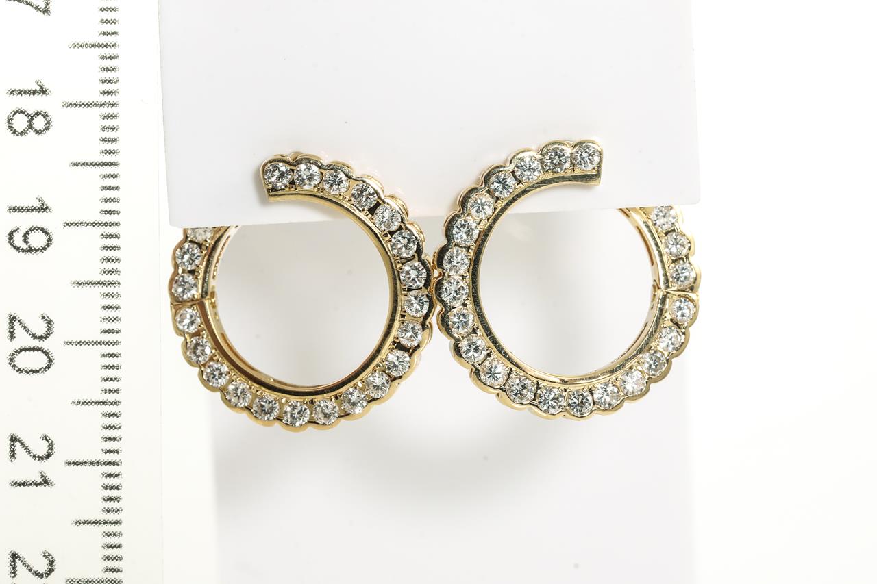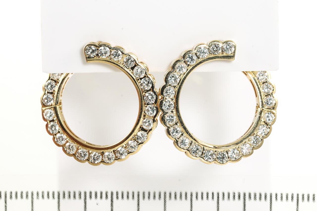 Diamond circle design earrings with round cut Diamonds totalling 2.20cts (Estimated grading: G-H SI). 18ct yellow gold. Weight: 10.3g. With certificate #415187. (Pre-owned)