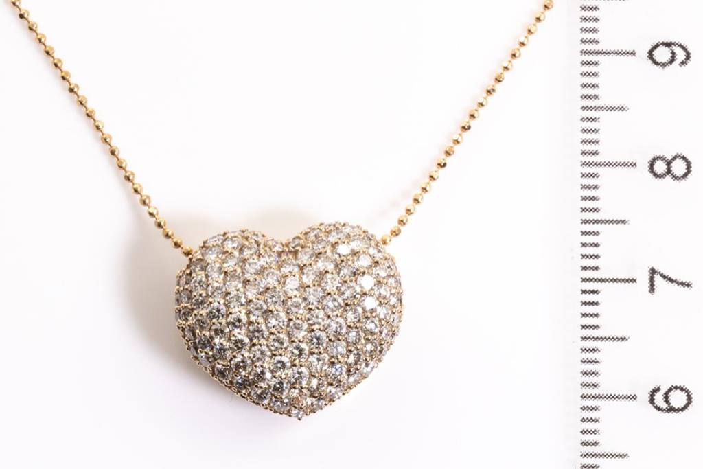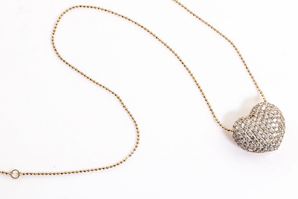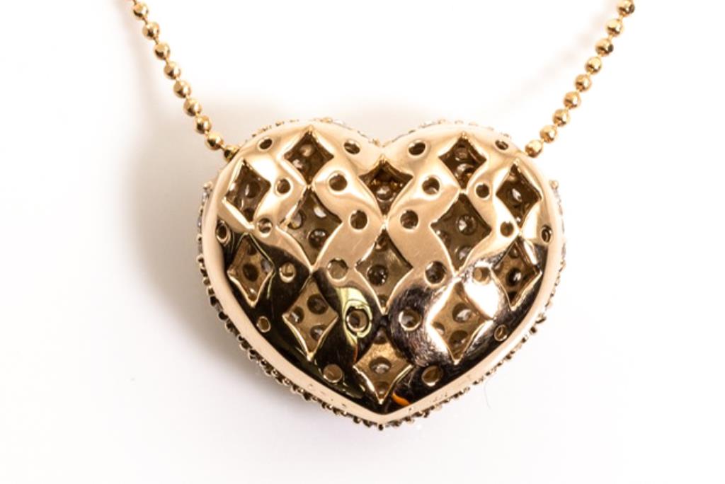 Diamond heart design pendant with round Diamonds totalling 2.20cts (Estimated grading: H SI). 18ct rose gold with 18ct rose gold adjustable chain. Length: 44cm. Weight: 8.3g. (Pre-owned)