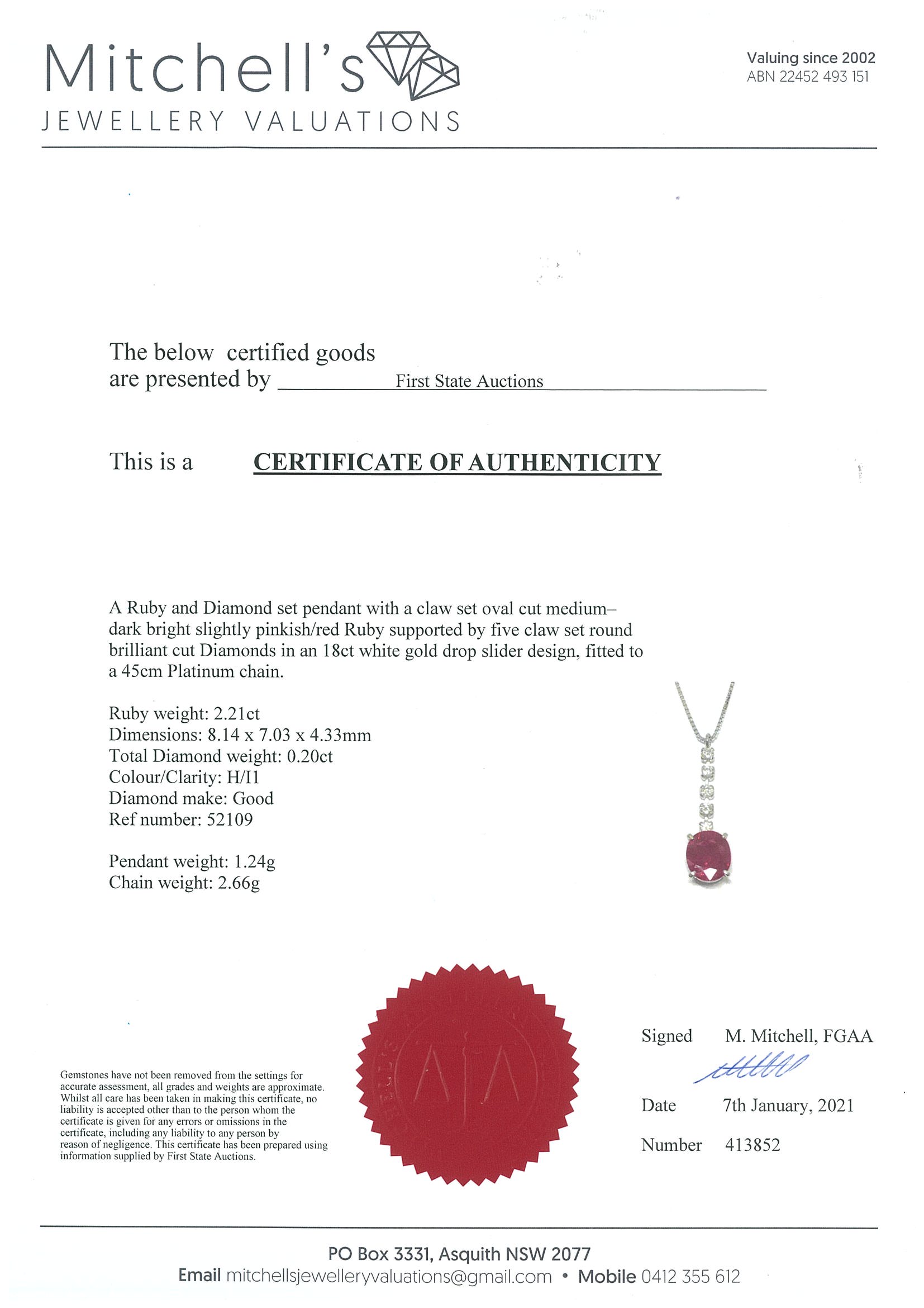 2.21ct Ruby and Diamond Pendant | First State Auctions