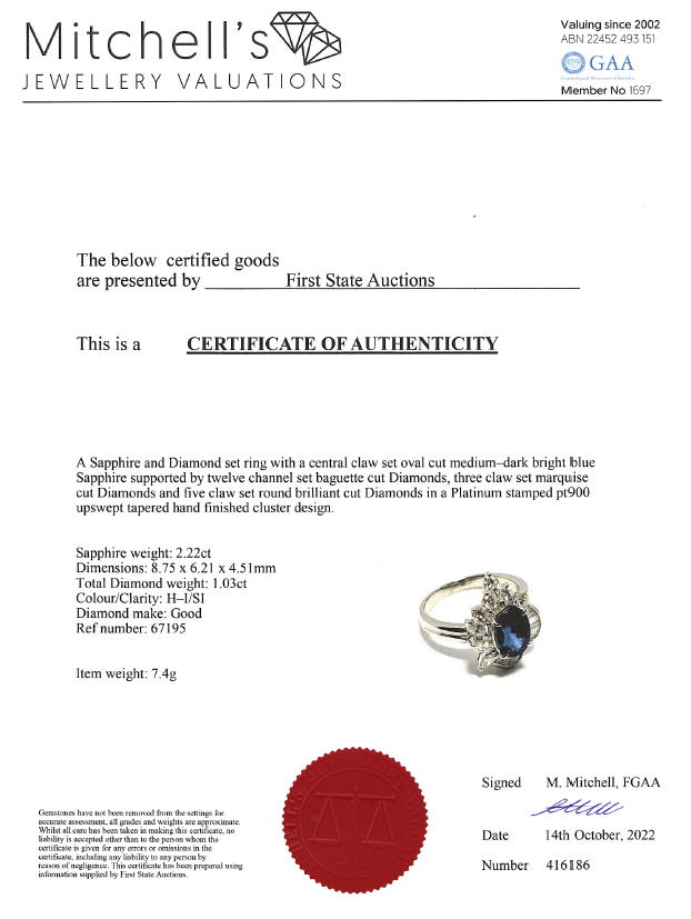 2.22ct Sapphire and Diamond Ring | First State Auctions
