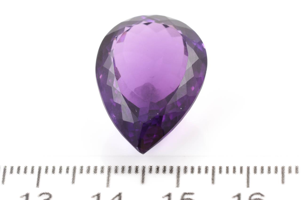 A Loose pear shape Amethyst of 22.50cts. Size: 23.8 x 16.3 x 9.5mm. (New)