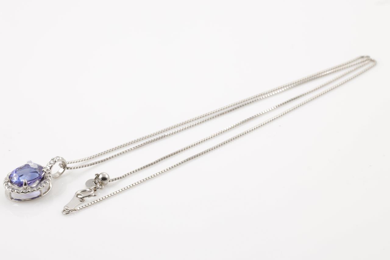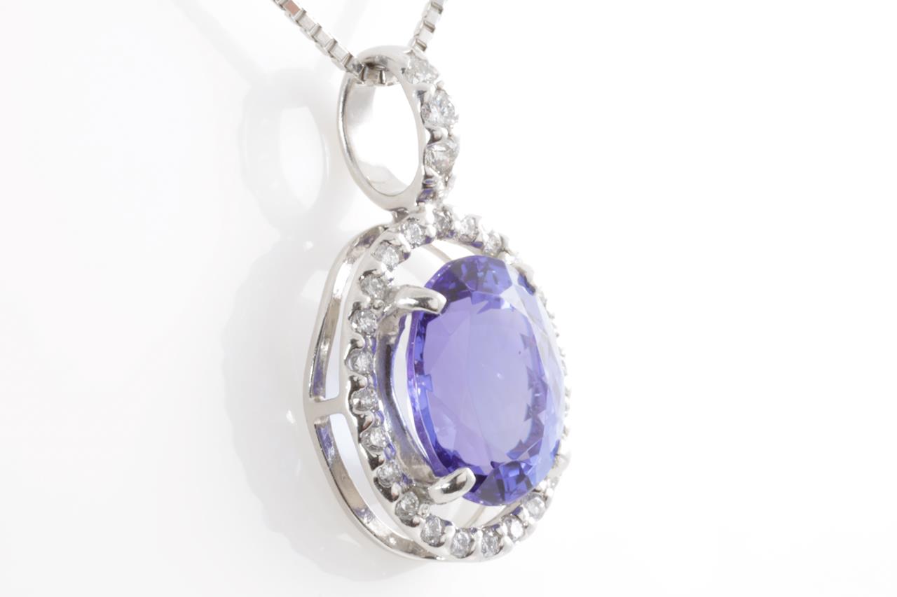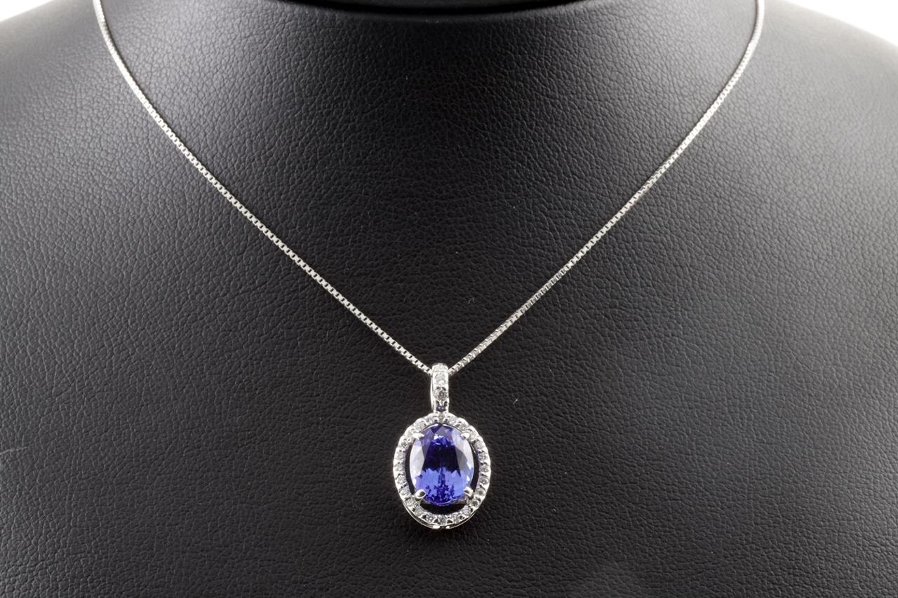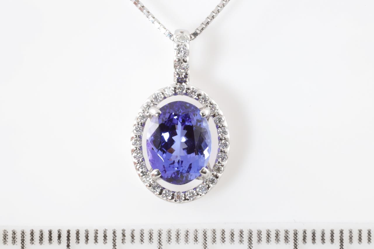 Tanzanite and Diamond pendant with oval Tanzanite of 2.38ct and Diamonds totalling 0.15cts. Platinum with adjustable 45cm chain. Weight: 4.4g (Pre-owned)