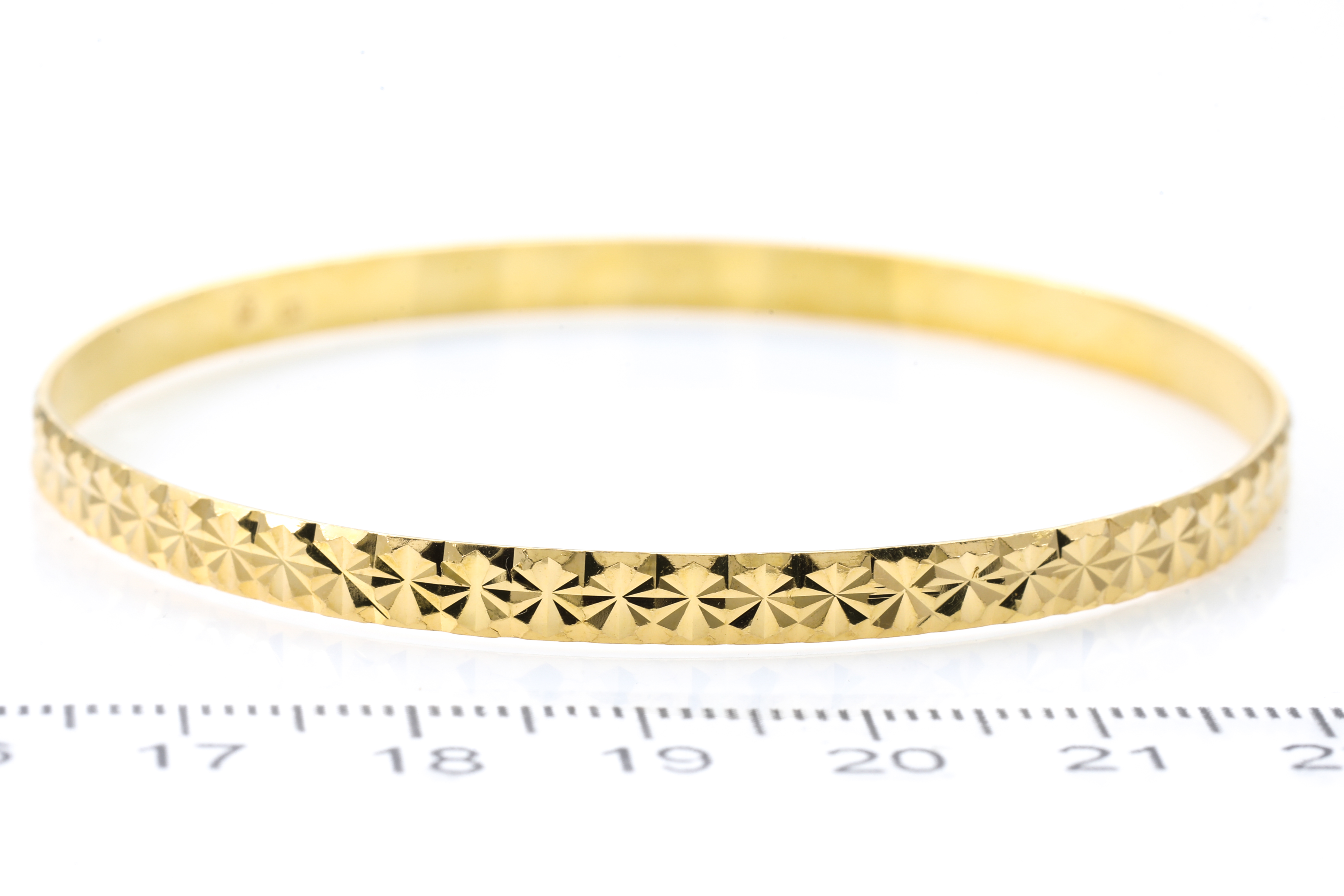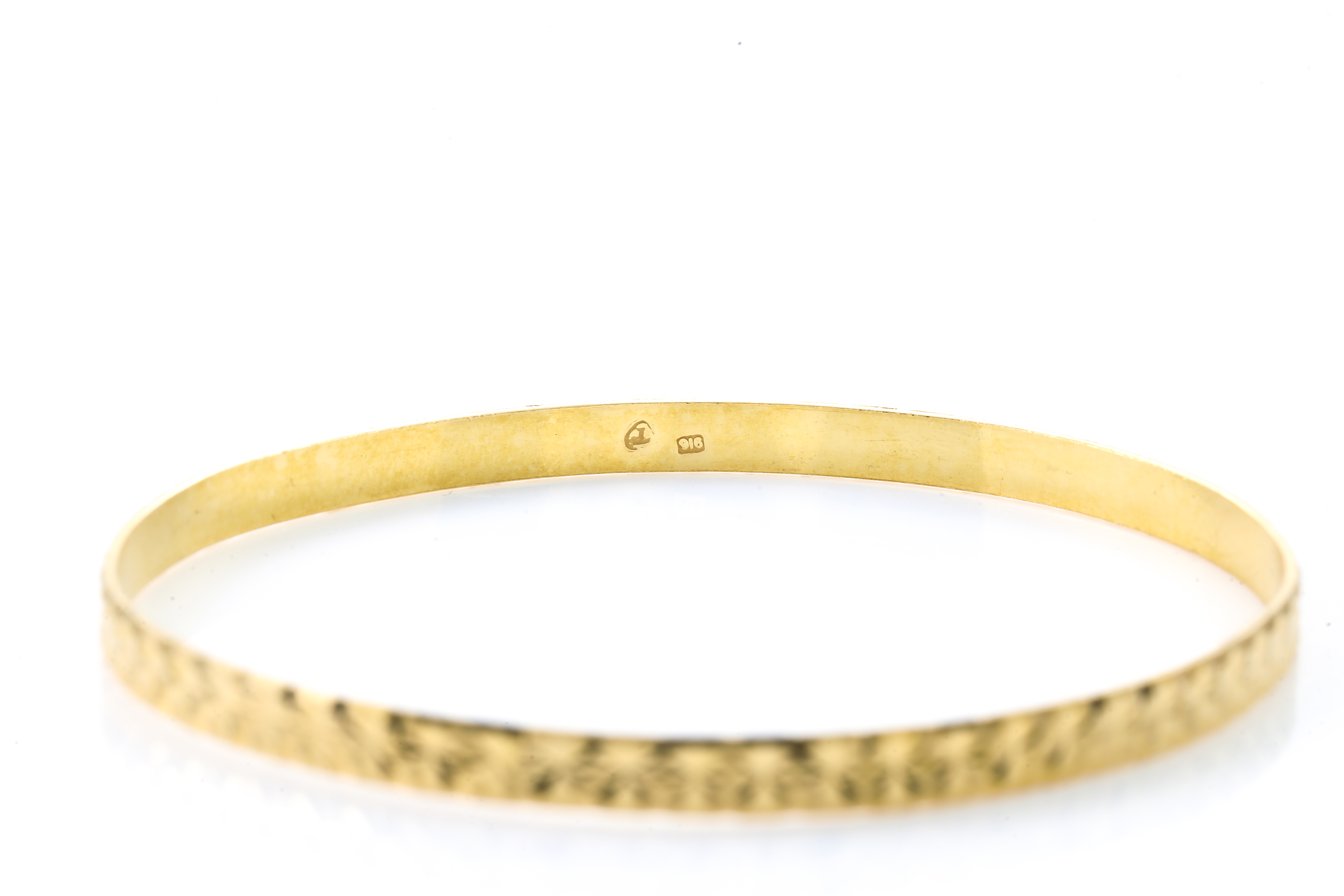 Gold Bangle. 22ct yellow gold. Circumference 18cm. Diameter 6.3cm. Width 4mm. Weight 11.6g. (Pre-owned)