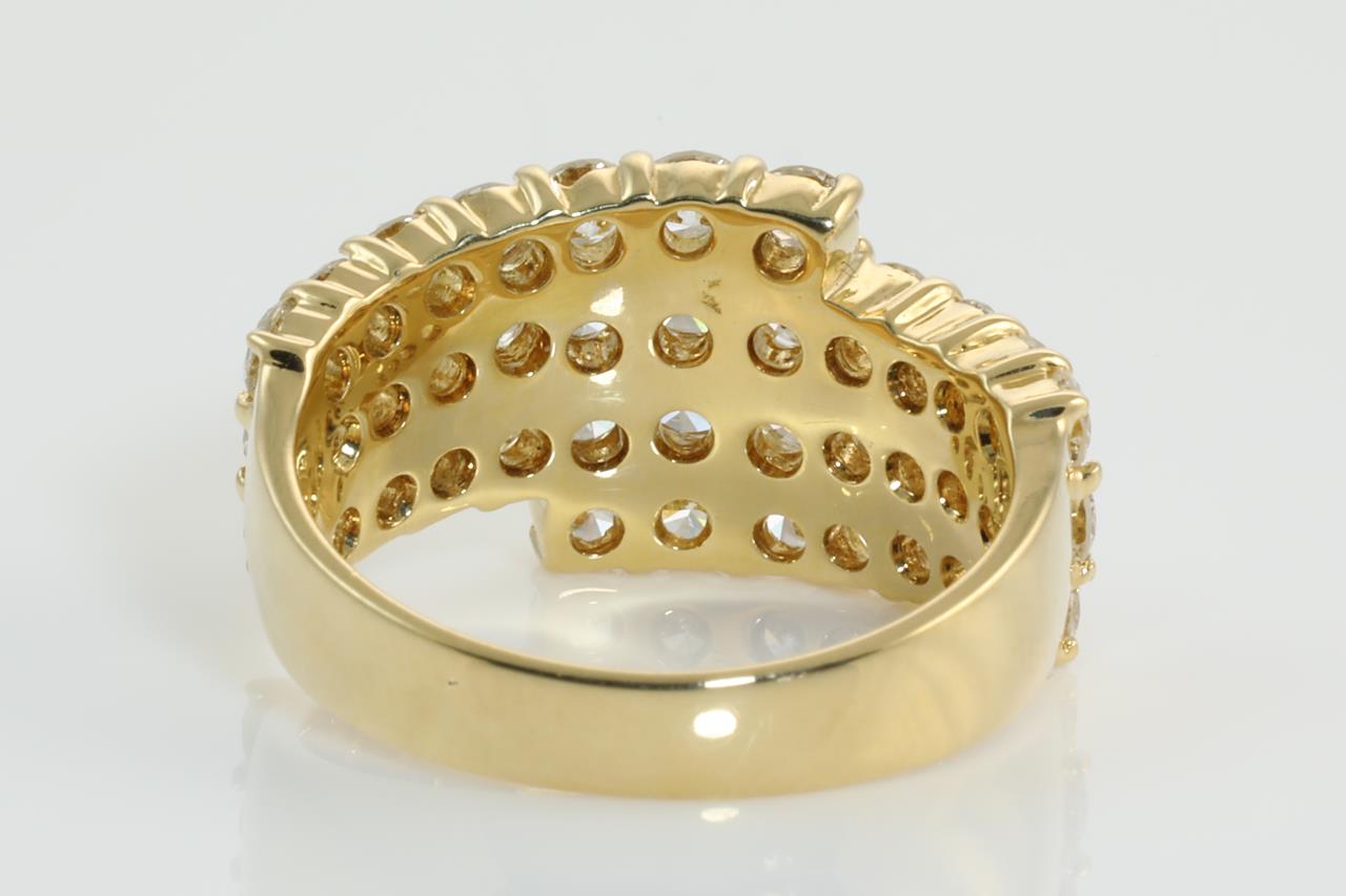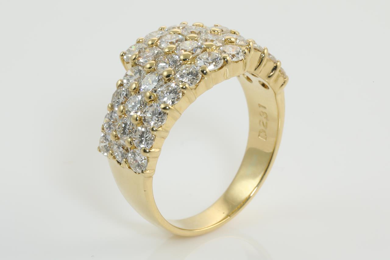 Diamond dress ring with round Diamonds totalling 2.31cts (Estimated grading: I VS-SI). 18ct yellow gold. Ring size L - Note it is not recommended to resize this ring up, it can be resized down by ring clip. Weight: 7.4g (Pre-owned)
