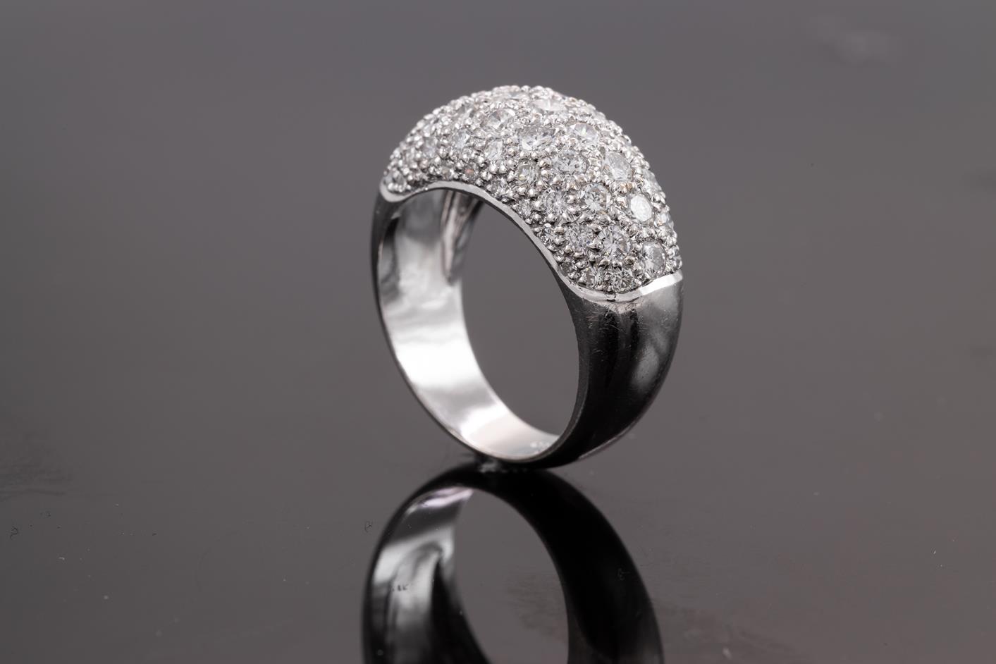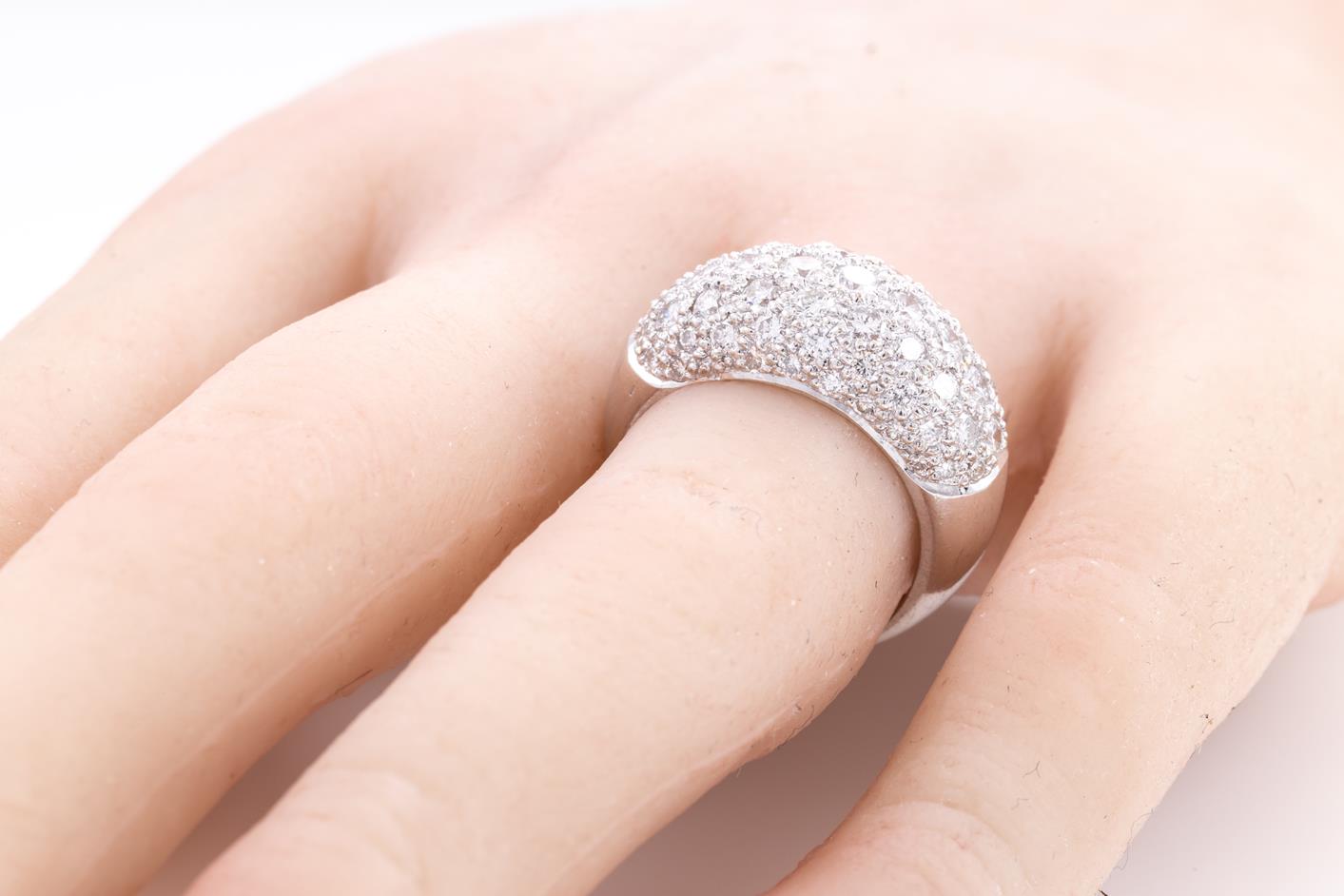 Diamond dome shaped ring with round brilliant cut Diamonds totalling approximately 2.32cts (Estimated grading G VS-SI). 18ct white gold. Ring size M. Weight 8.4g. (Pre-owned)