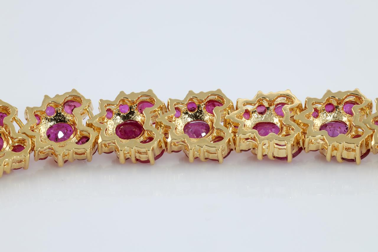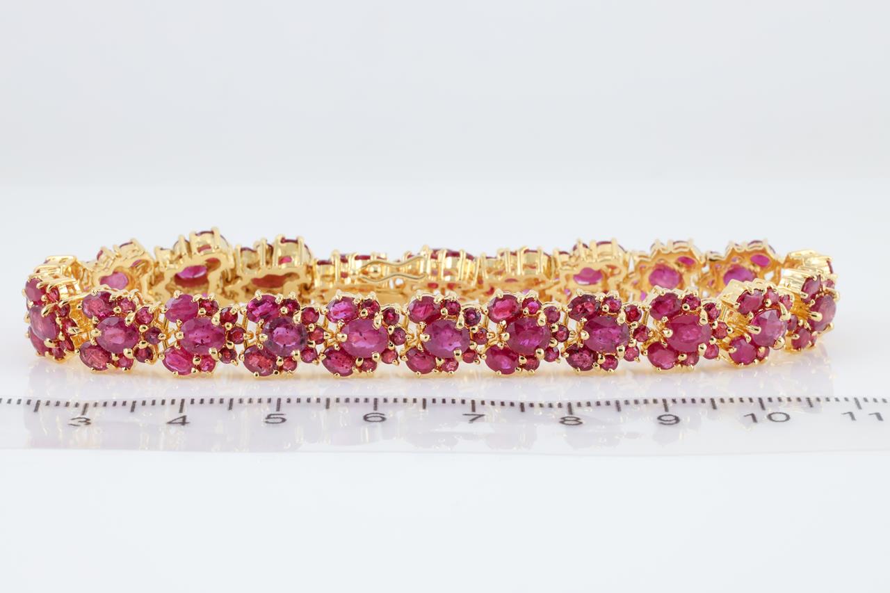 Ruby bracelet with round and oval shape Rubies totalling approximately 23.46cts. 18ct yellow gold. Length: 19cm. Weight: 32.3g With certificate #4250 (Pre-owned)