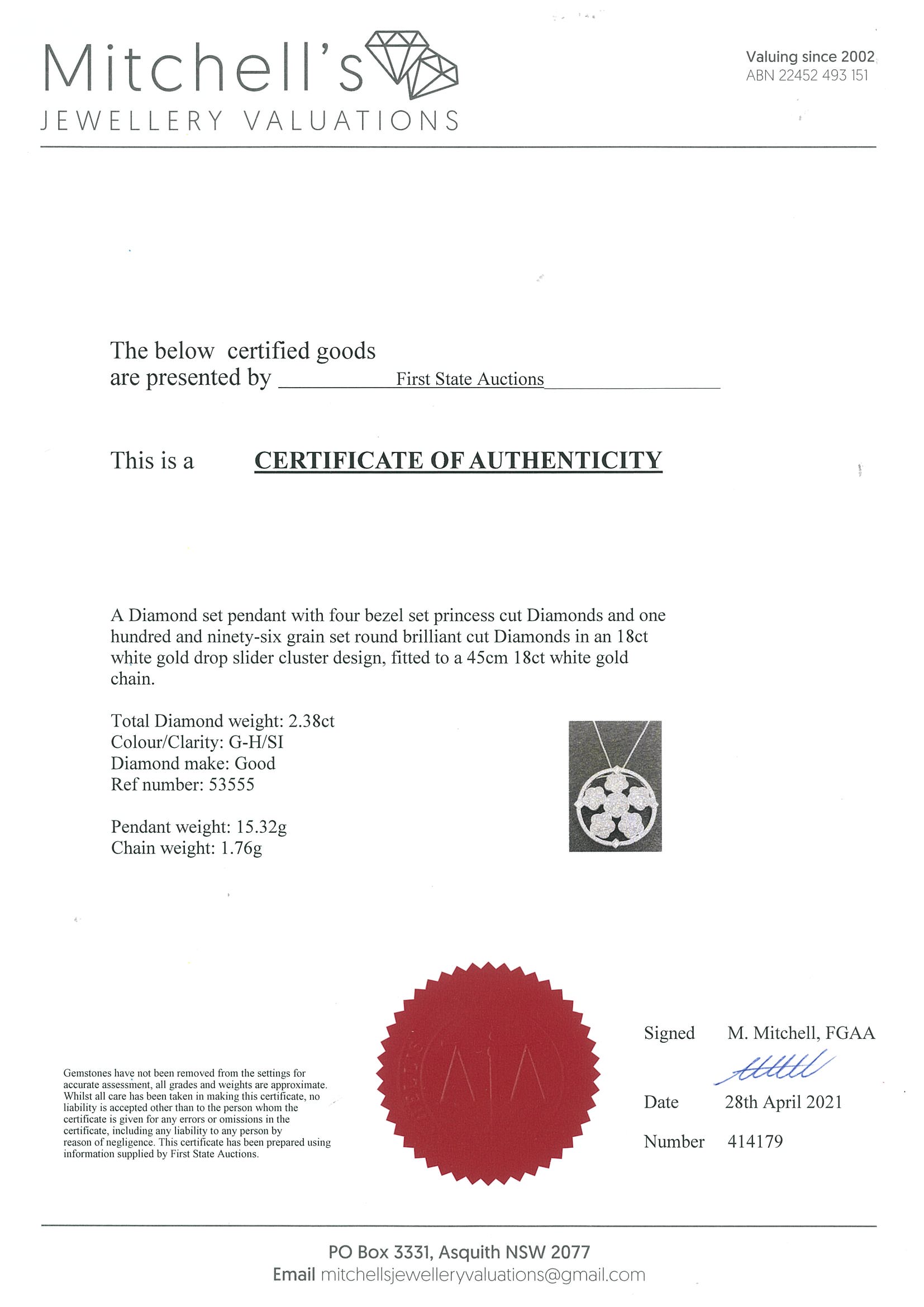 2.38ct Diamond Pendant | First State Auctions