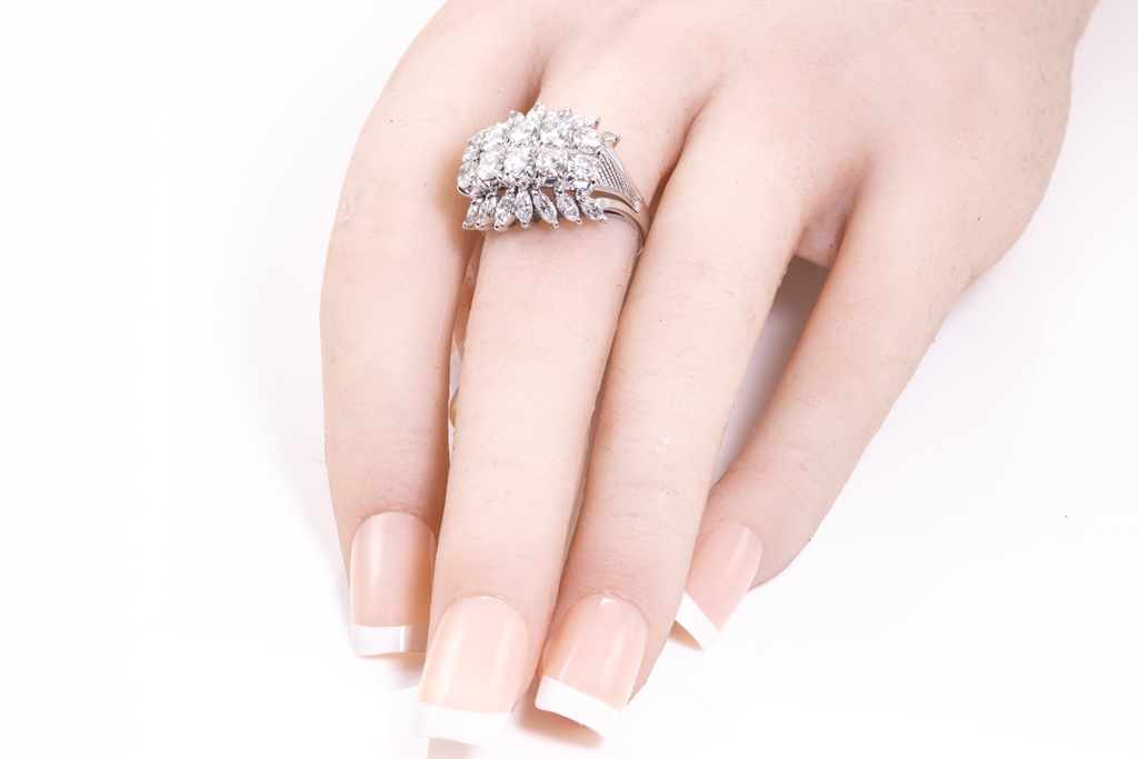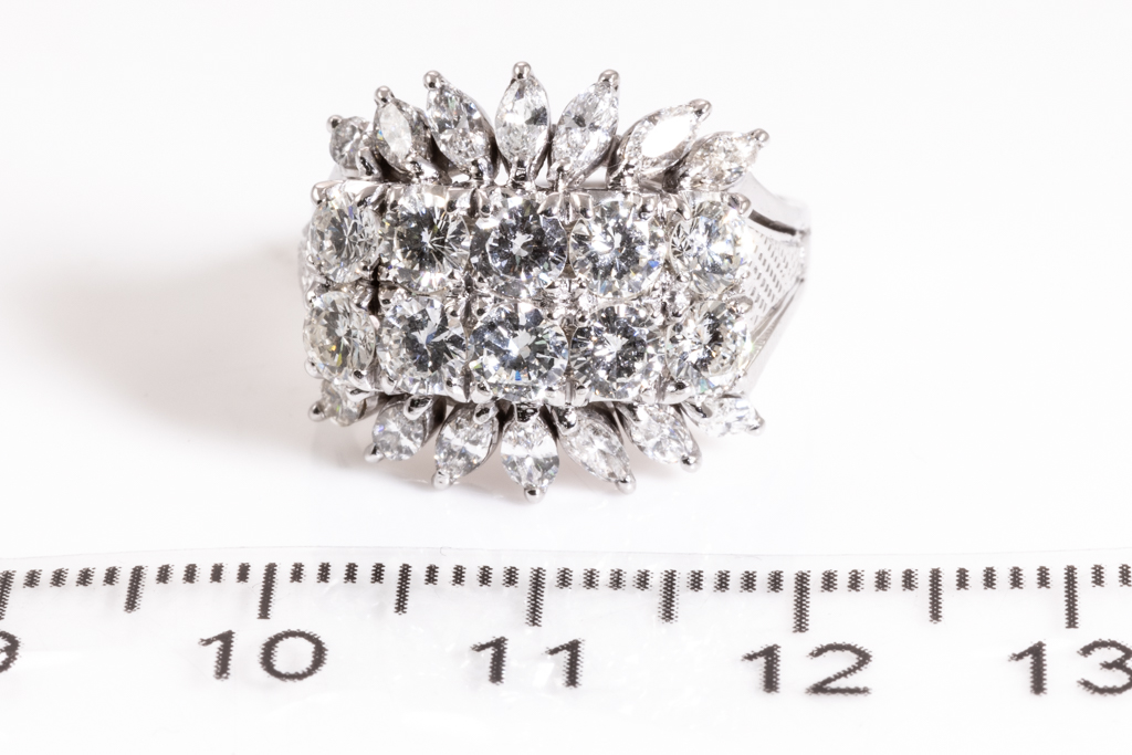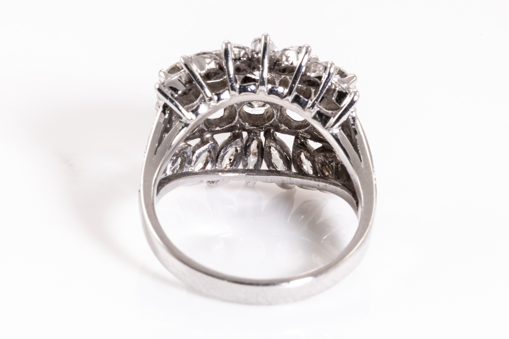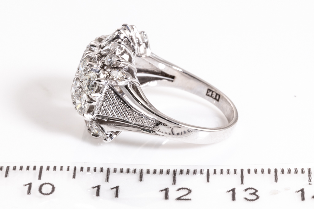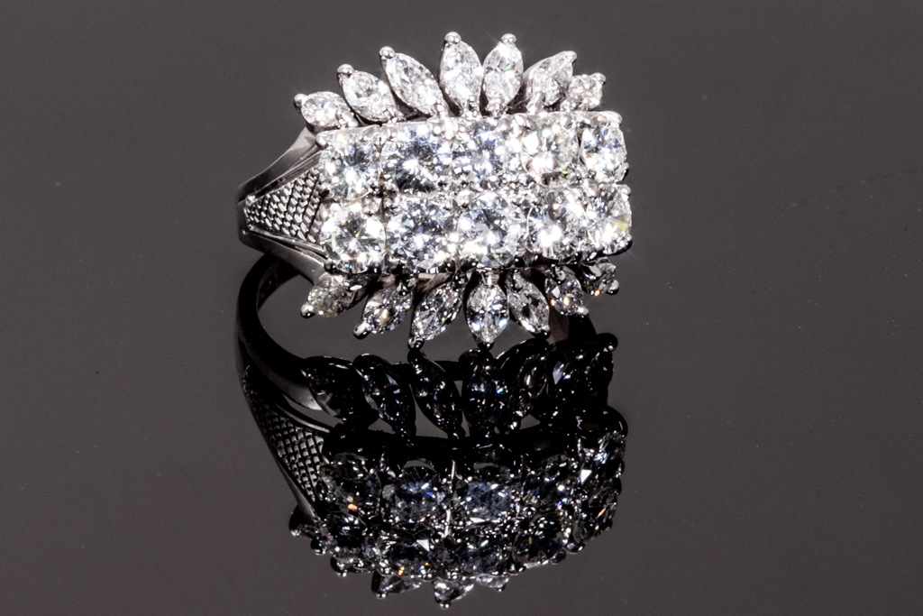 Diamond dress ring with round and marquise cut Diamonds totalling approximately 2.40cts (Estimated grading: H-J SI). 18ct whtie gold. Ring size M. Weight: 7.1 (Pre-owned)