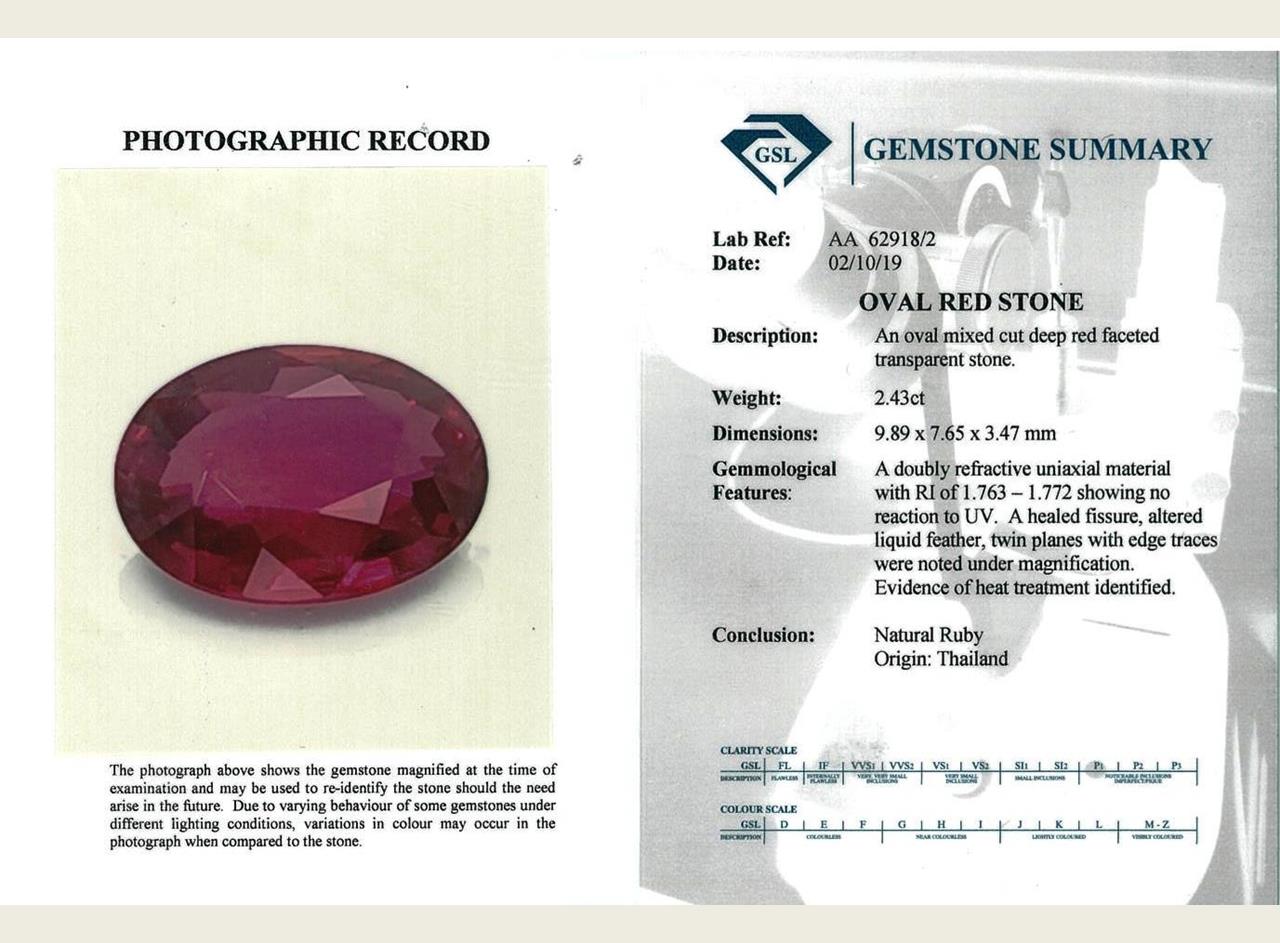 A loose oval shape Thai Ruby of 2.43ct (with GSL summary report #AA 62918/2). (As new)