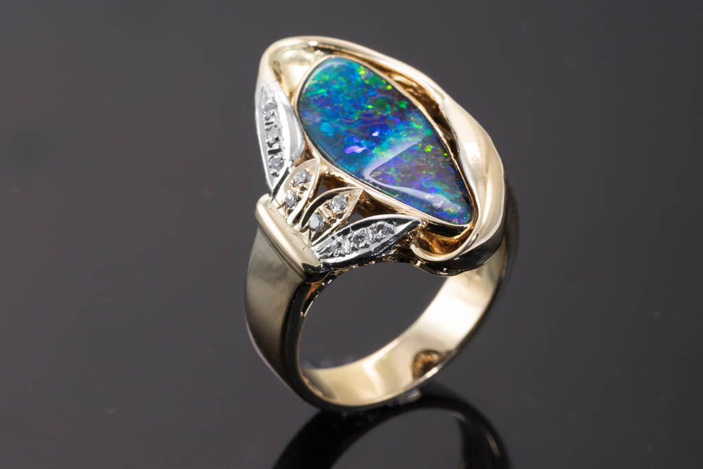 2.44ct Boulder Opal and Diamond ring
