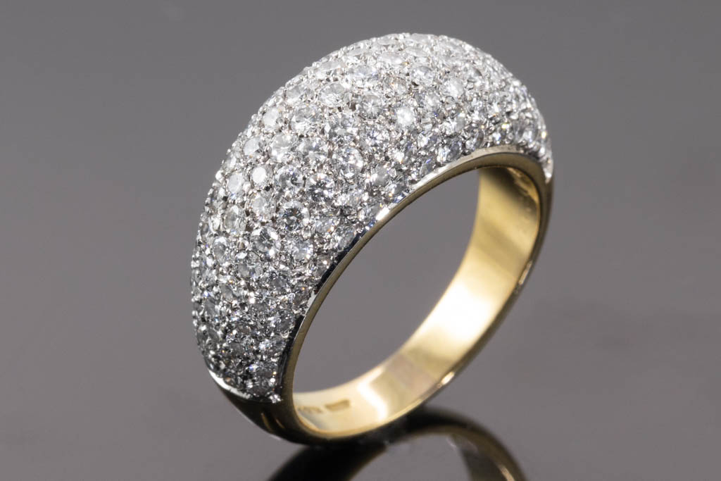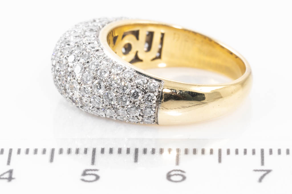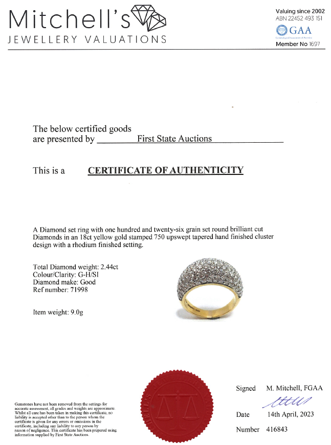 Diamond ring with round Diamonds totalling 2.44cts (Estimated grading: G-H SI). 18ct yellow gold. Ring size M1/2. Weight: 9.0g. With certificate #416843. (Pre-owned)