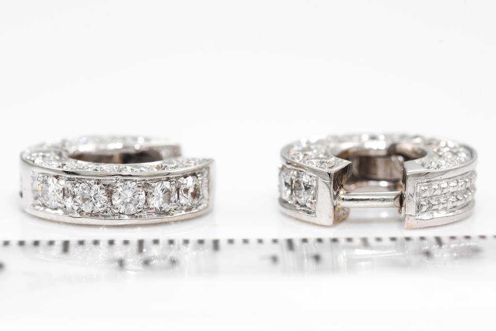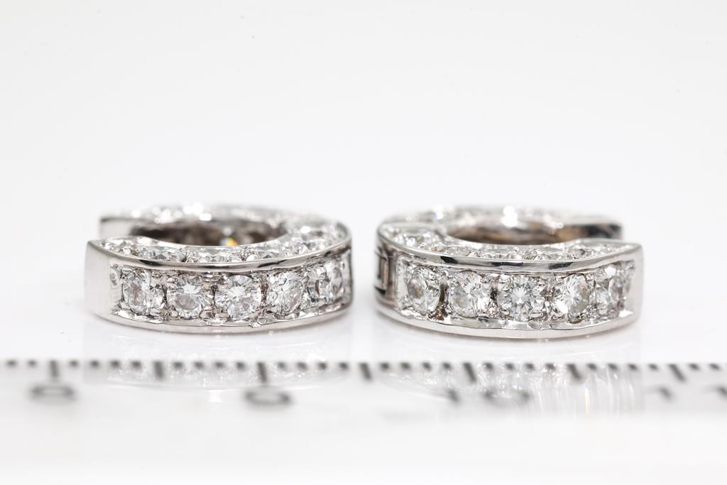 Diamond huggie earrings with round Diamonds totalling approximately 2.50cts (Estimated grading: G-H VS-SI). 18ct white gold. Weight: 5.9g. (Pre-owned)