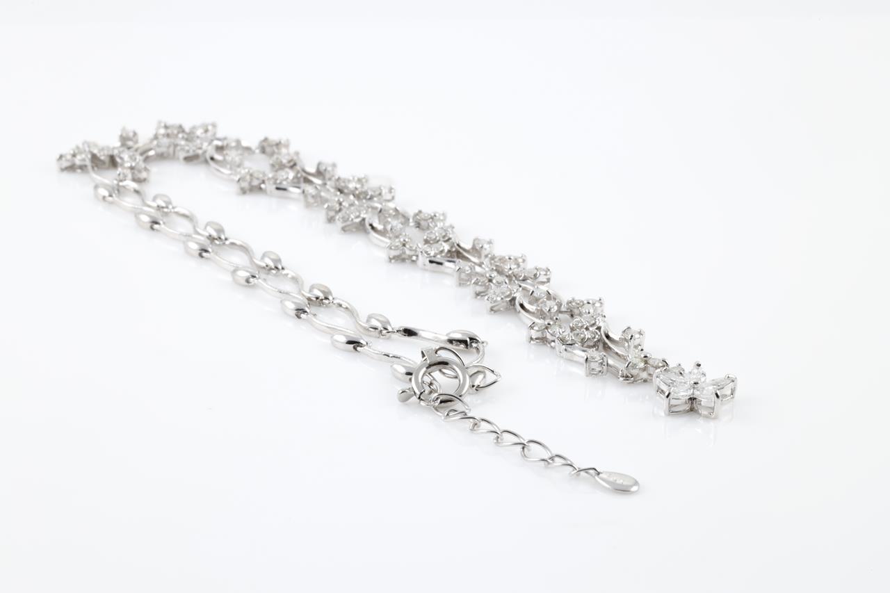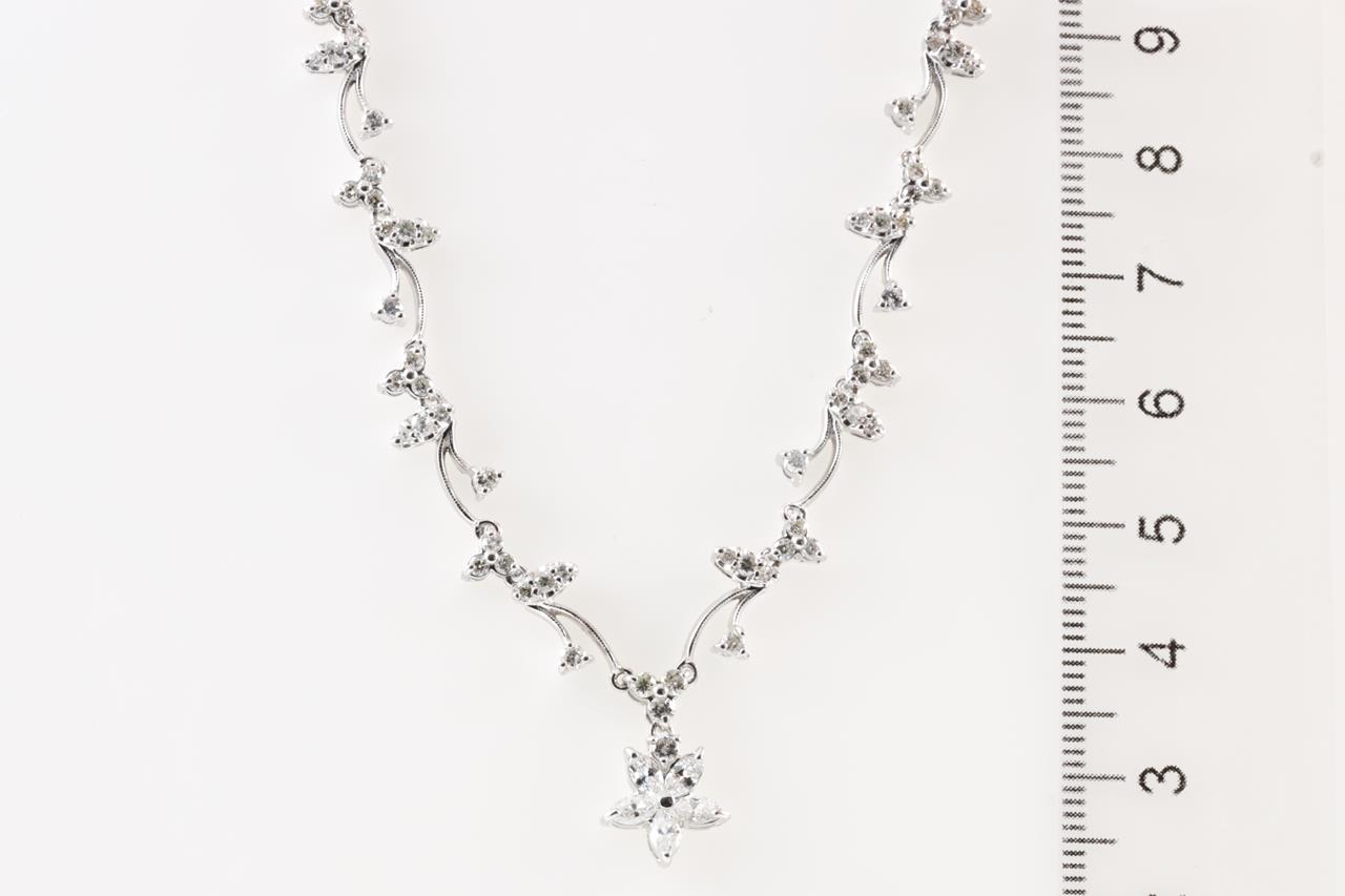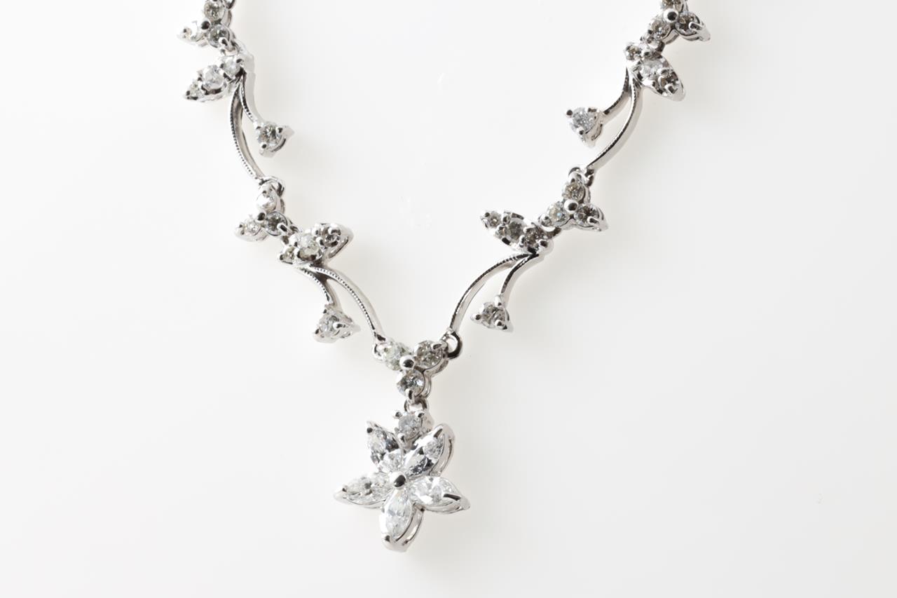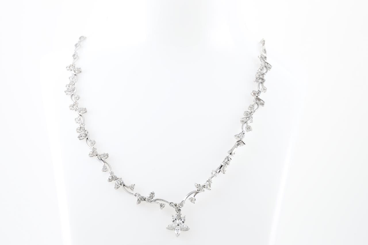Diamond Necklace with round and marquise cut Diamonds totalling 2.50cts (Estimated grading: GHI SI-P1). Platinum. Adjustable max length: 43cm. Weight: 17.5g (Pre-owned)