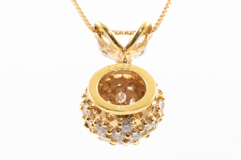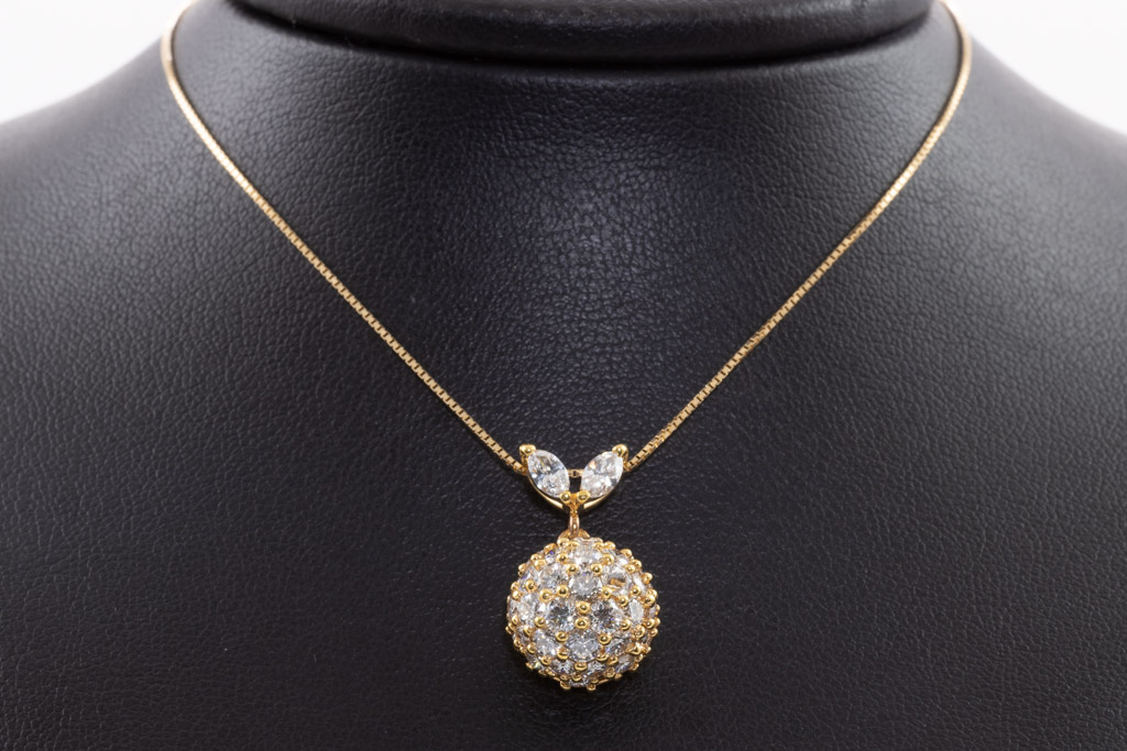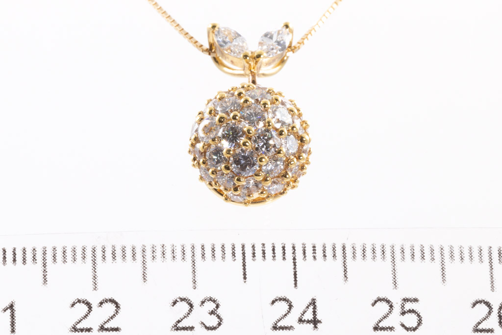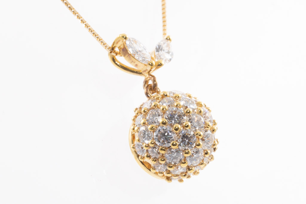 Diamond pendant with round & marquise cut Diamonds totalling 2.52cts (Estimated grading: G-H SI). 18ct yellow gold with 44cm 18ct yellow gold ajdustable chain. Weight: 7.1g. (Pre-owned)