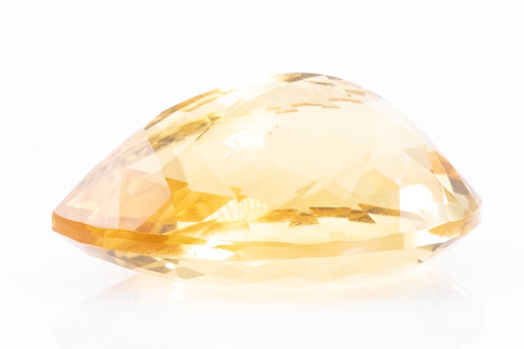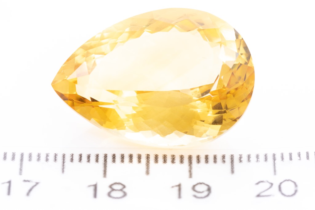 A loose pear shape Citrine of 25.75ct. Dimensions: 24.0mm x 17.5mm x 11.4mm. (As New)