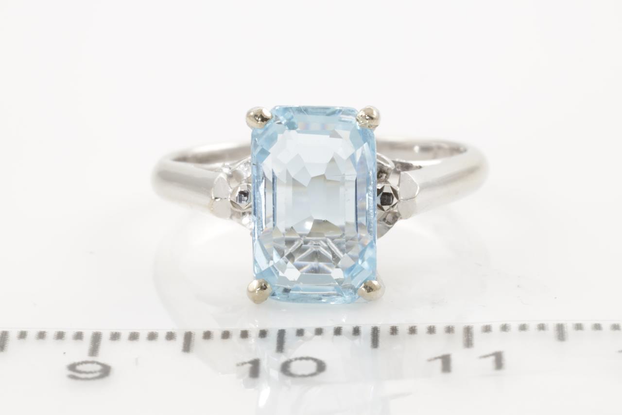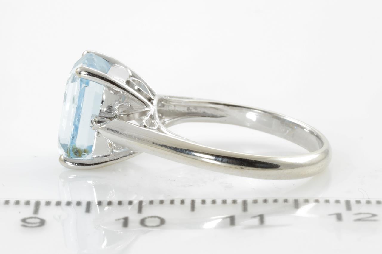 Aquamarine ring with a radiant cut Aquamarine of approximately 2.70ct. 14ct white gold. Ring size M. Weight: 4.2g (Pre-owned)