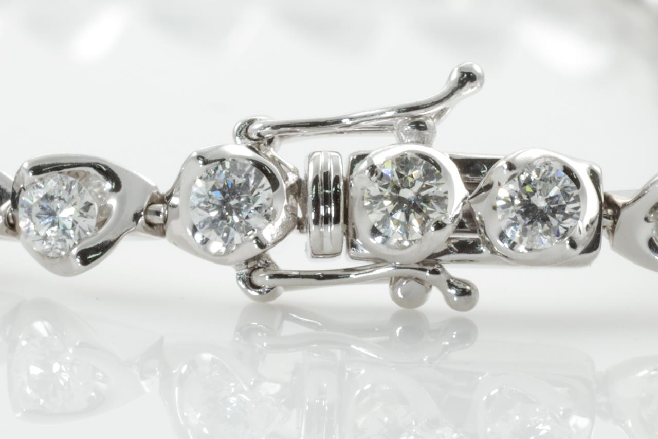 Diamond bracelet with slightly graduated round Diamonds totalling approximately 2.70cts (Estimated grading: GHI SI). 18ct white gold. Length: 16cm. Weight: 10.2g. (Pre-owned)