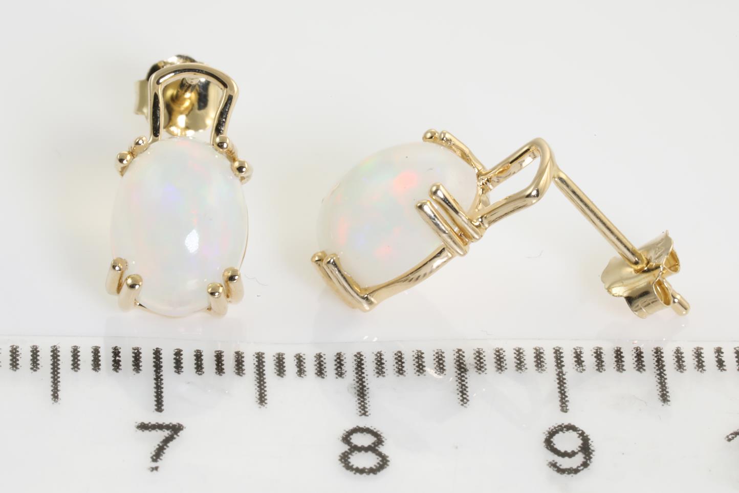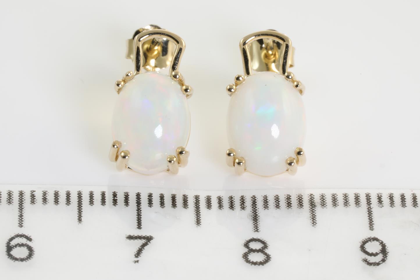 Opal earrings with oval cut white Opals totalling 2.72cts. 14ct yellow gold. Weight:1.7g (As New)