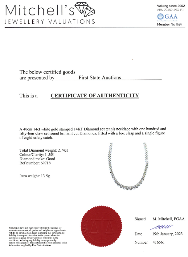 2.74ct Diamond Tennis Necklace | First State Auctions
