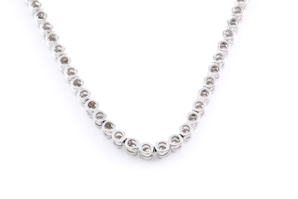 Diamond tennis necklace with 154 round Diamonds totalling 2.74cts (Estimated grading: I-J SI). 14ct white gold. Length: 40cm. Weight: 13.5g. With Certificate #416561. (New)