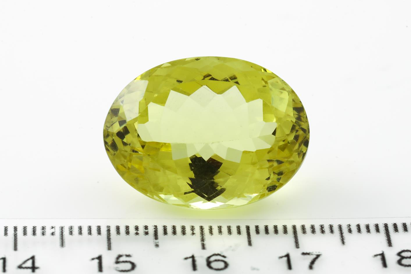 A loose oval shape Lemon Quartz of 27.54ct. Dimensions: 22mm x 16mm x 12.4mm. (As New)