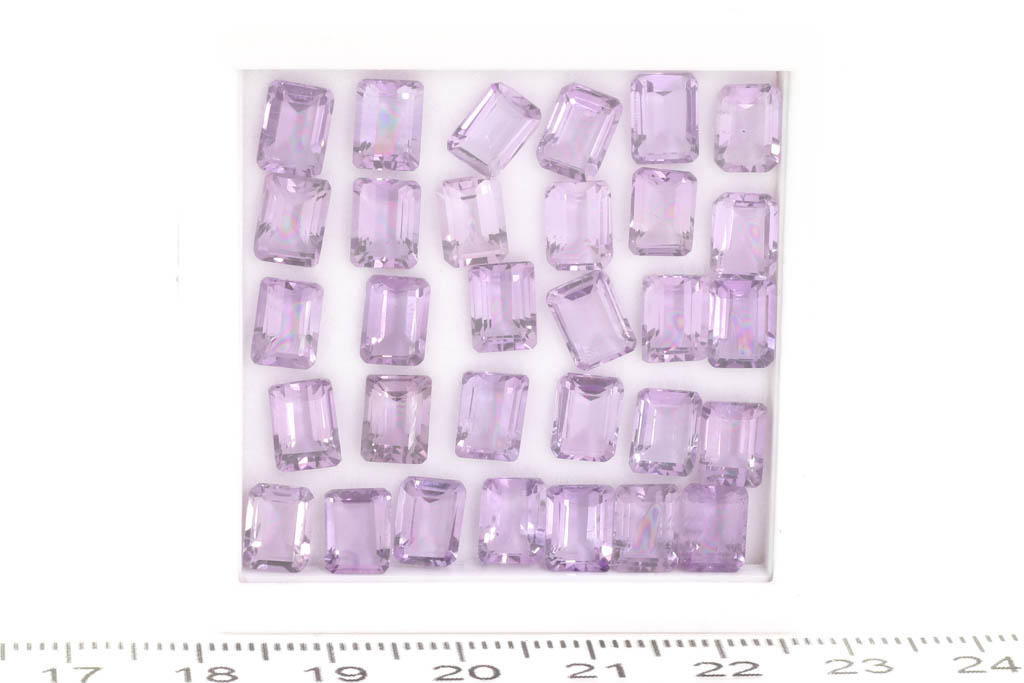 A loose parcel of approximately 31 emerald cut Amethysts totalling 27.90cts. Measuring approximately 7mm x 5mm. (As New)