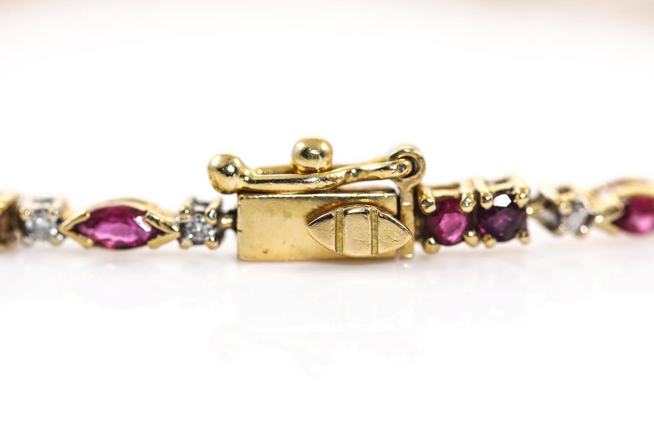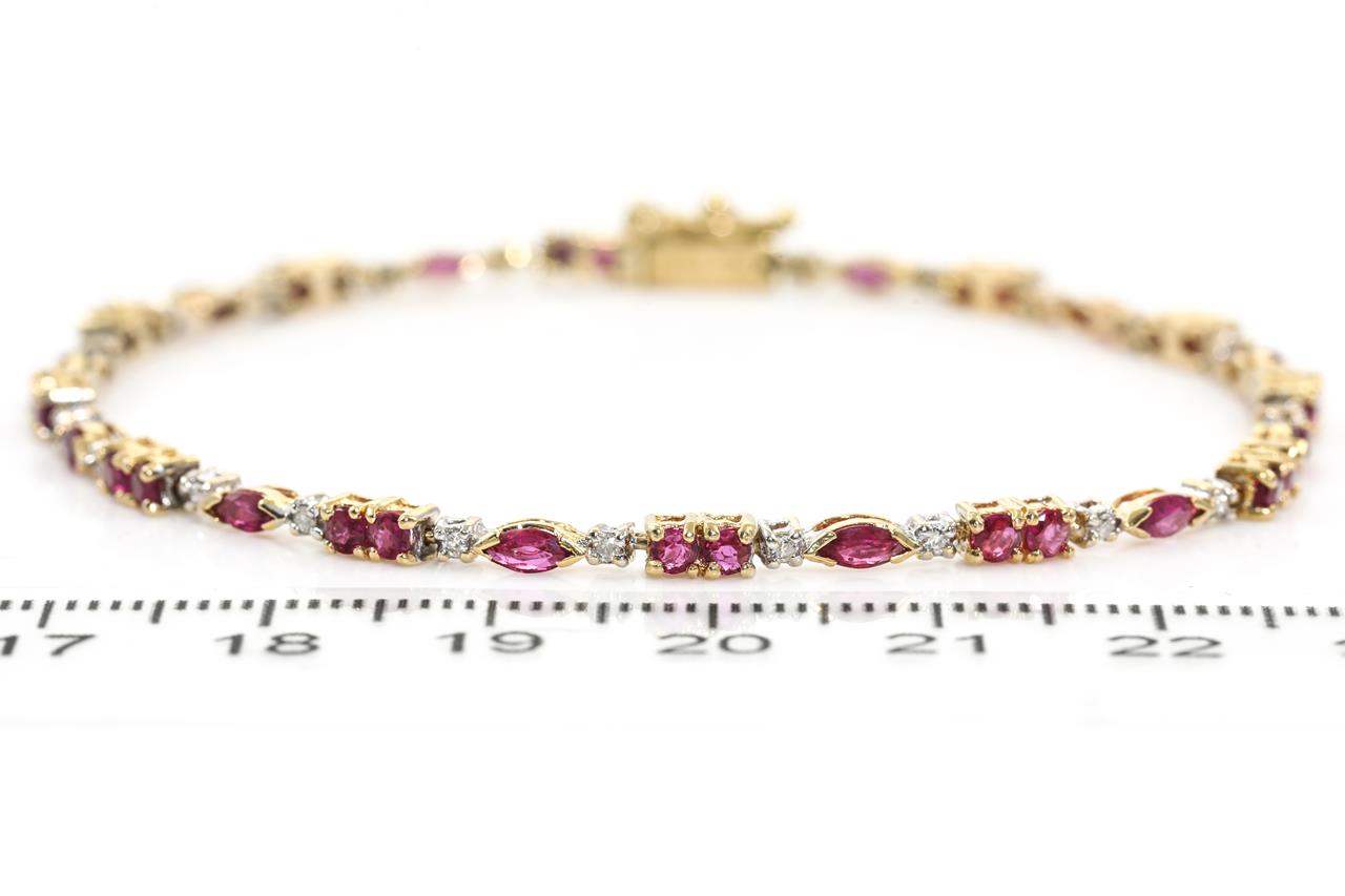 Ruby and Diamond Bracelet with round & marquise cut round Rubies totalling 2.80cts and Diamonds totalling 0.26cts. 18ct yellow gold. Length: 19cm Weight: 8.1g (Pre-owned)