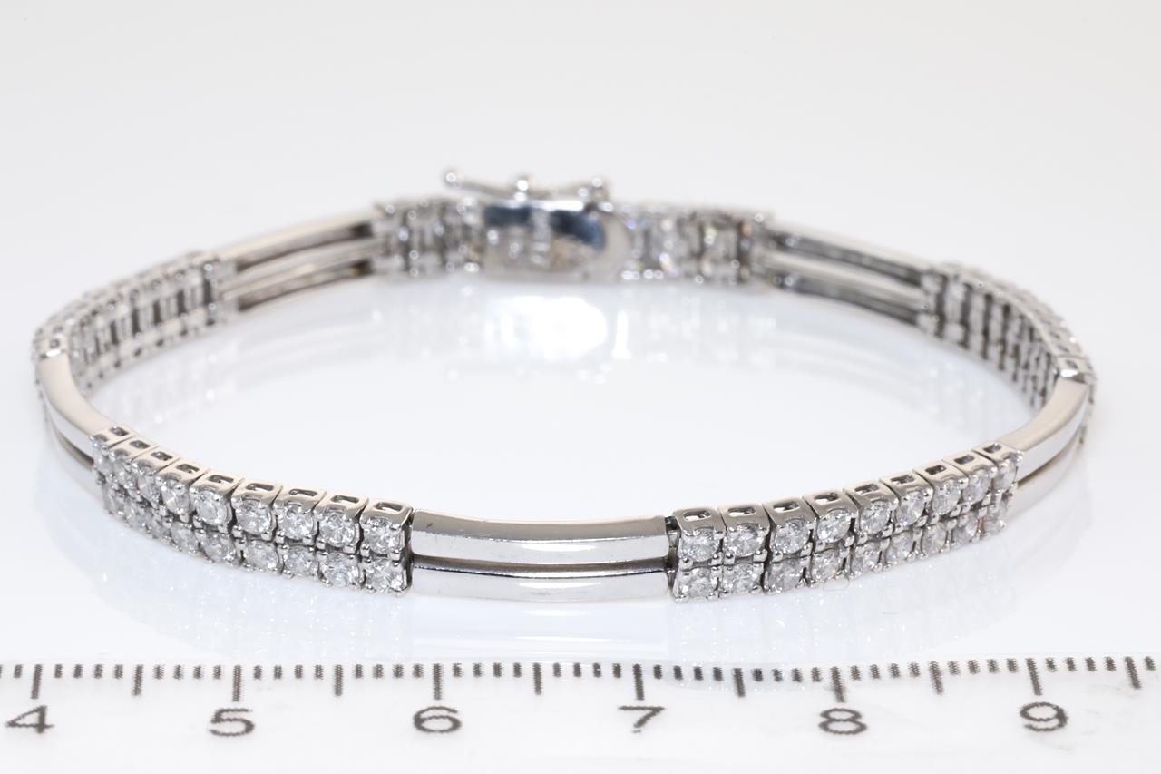 Diamond bracelet with round Diamonds totalling 2.81cts (Estimated grading: H SI). 18ct white gold. Length: 18cm Weight: 13.9g (Pre-owned)
