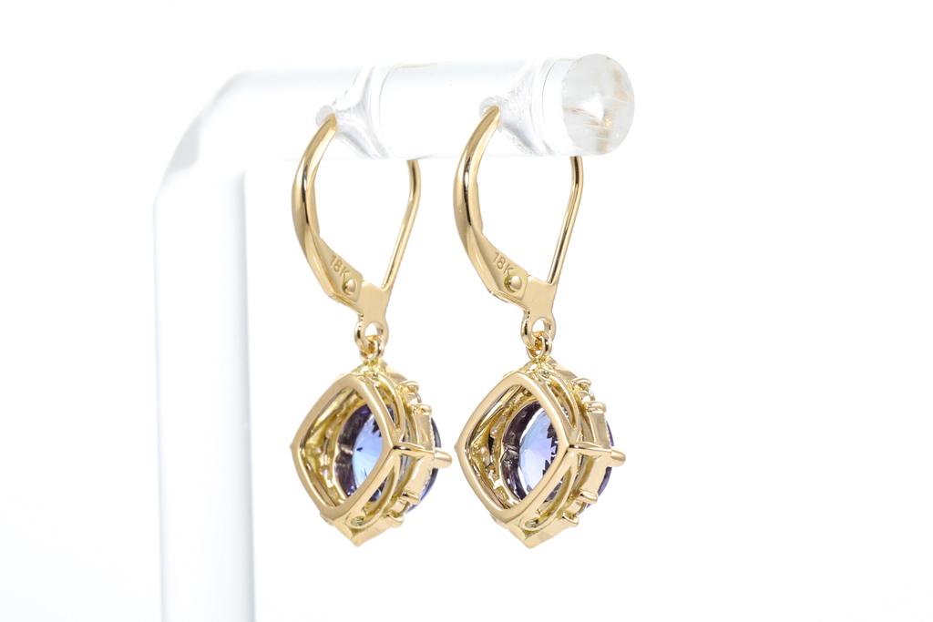 Tanzanite and Diamond lever back earrings with round Tanzanite totalling 2.83ct and round Diamonds totalling 0.35cts (Estimated grading: H SI). 18ct white gold. Weight: 4.4g. (New)
