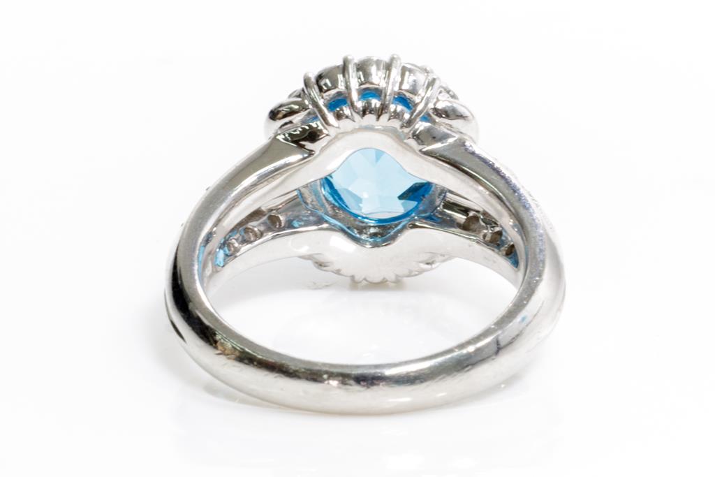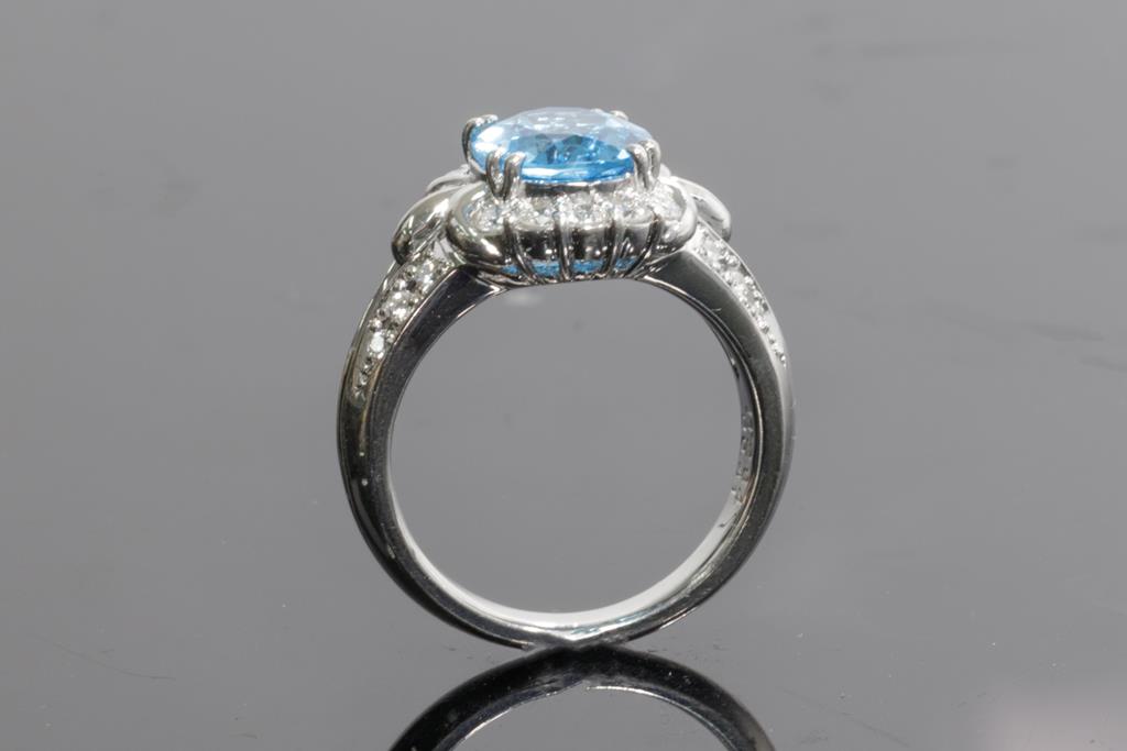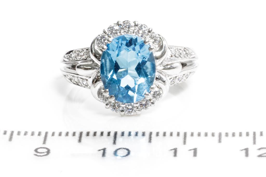 Topaz and Diamond ring with oval Topaz of 2.84ct and round Diamonds totalling 0.41cts (Estimated grading: G SI). Platinum. Ring size L. Weight: 12g. (Pre-owned)