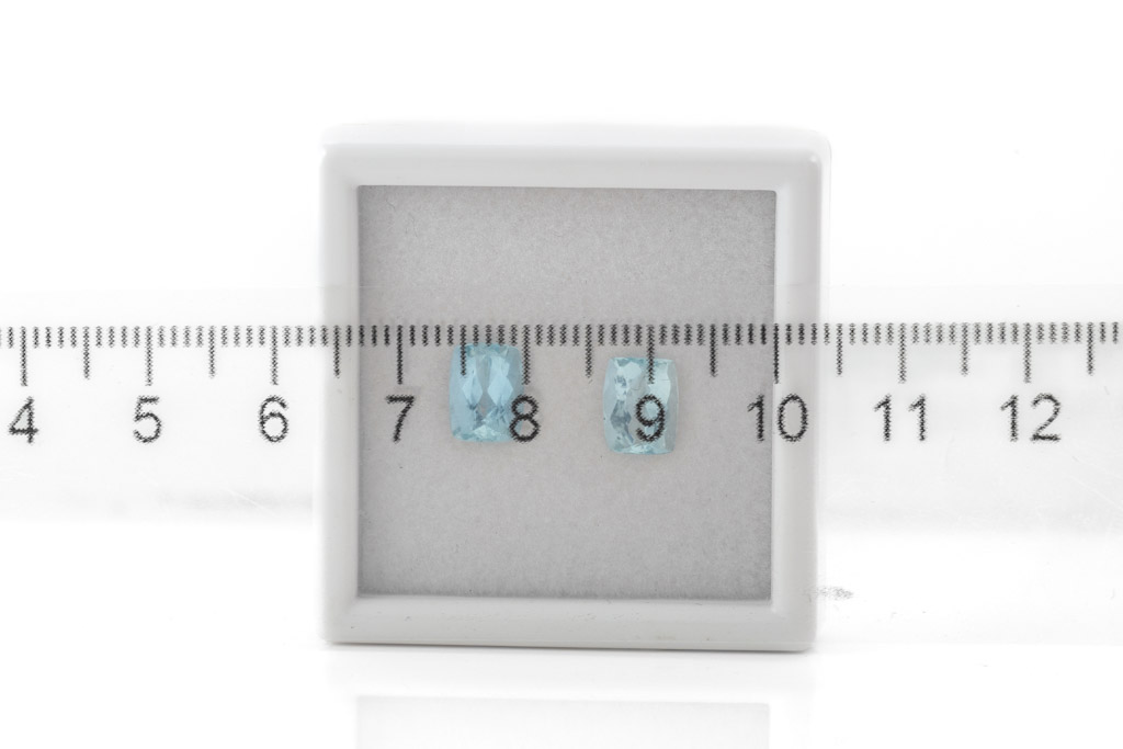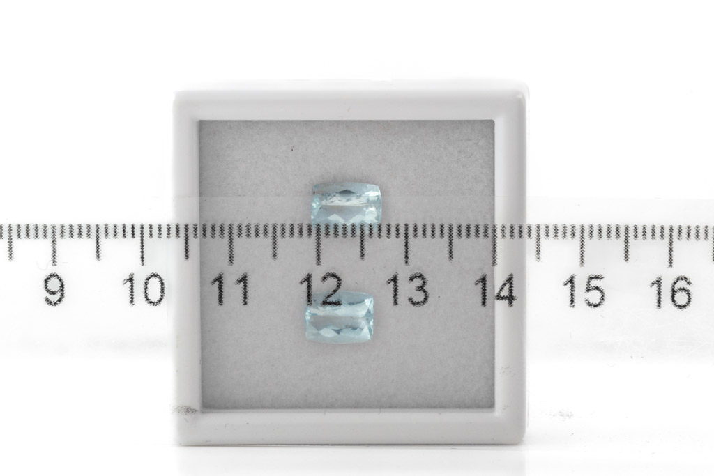 A Parcel of 2 loose cushion cut Aquamarines totalling 2.85cts. Size: 7.84x6.11x4.00mm, 8.04x6.11x4.72mm. (As New)