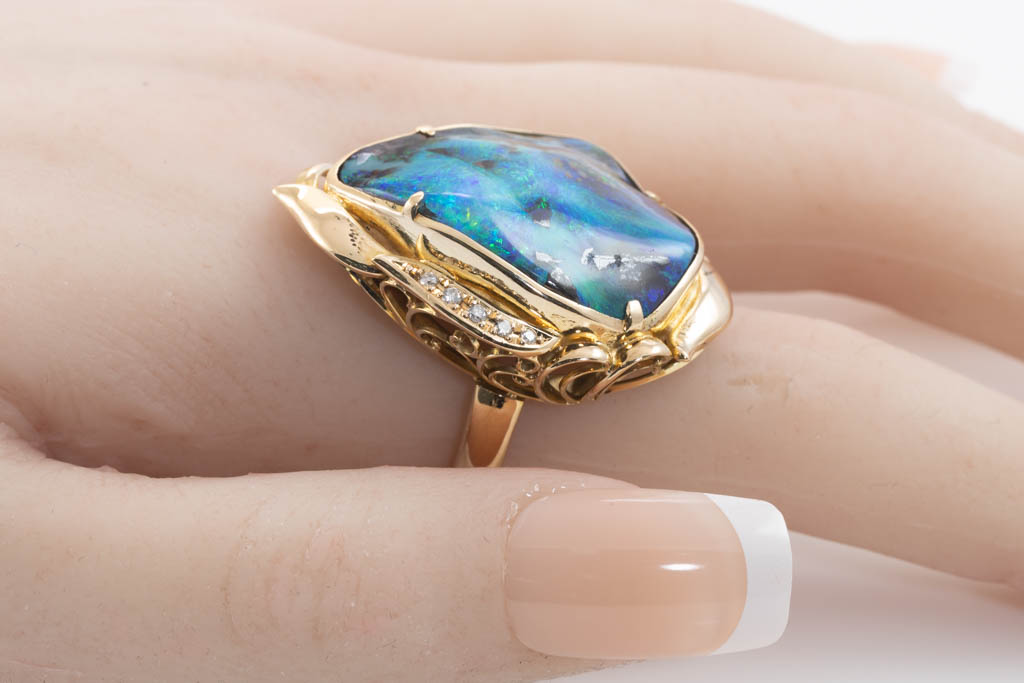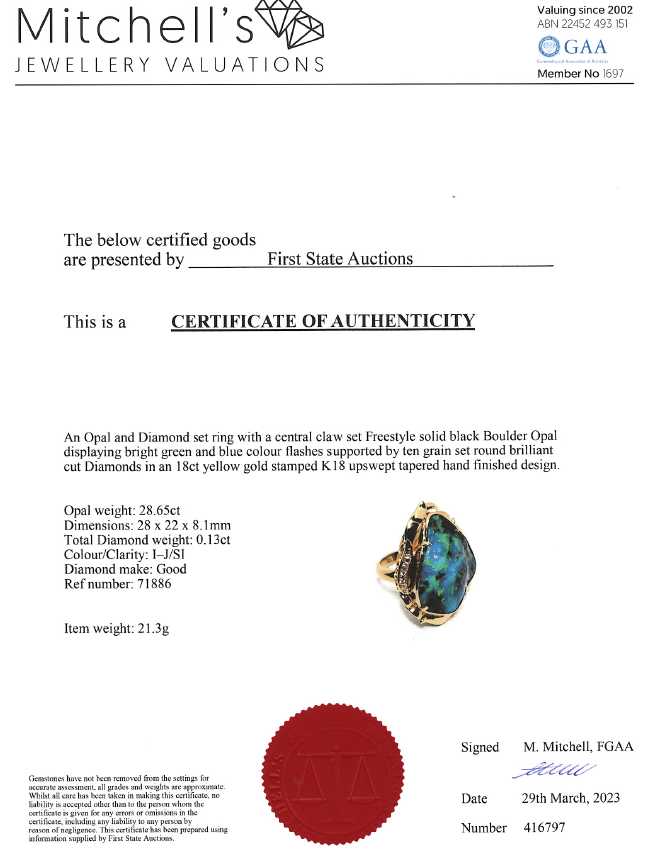 28.65ct Boulder Opal and Diamond Ring | First State Auctions