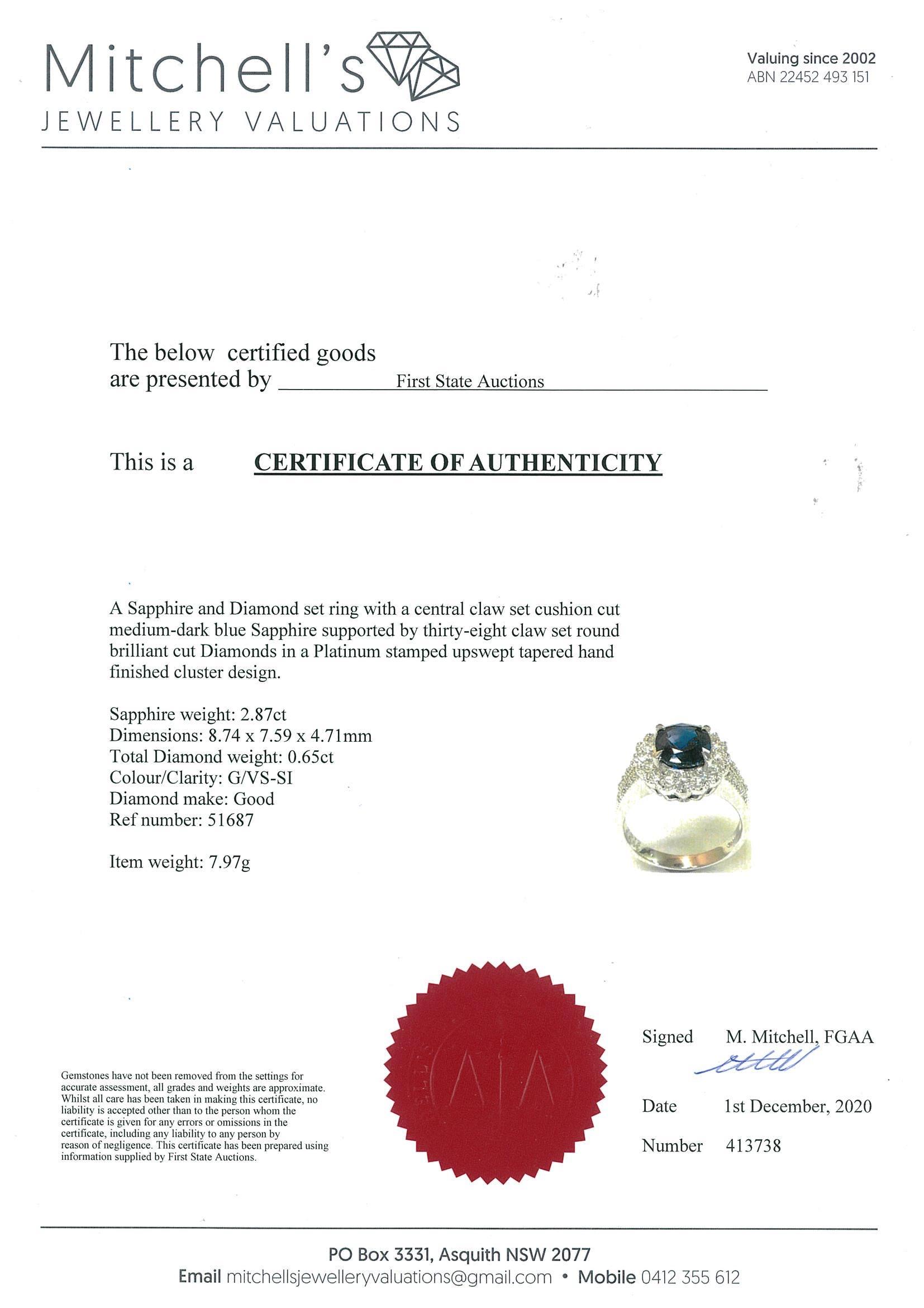 2.87ct Sapphire and Diamond Ring | First State Auctions
