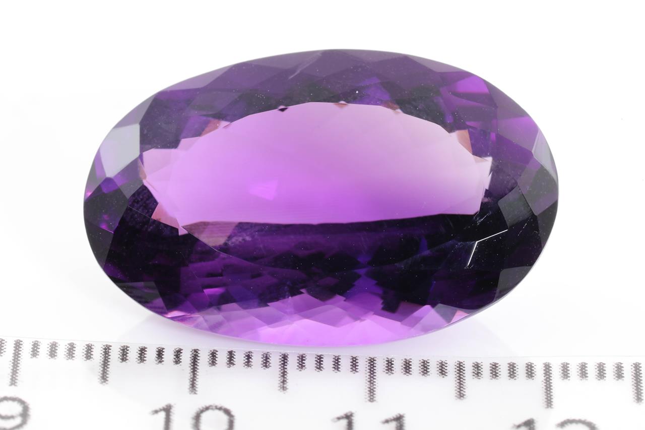 A Loose oval Amethyst of 28.90ct. Size: 26.9 x 17.5 x 10.8mm. (New)