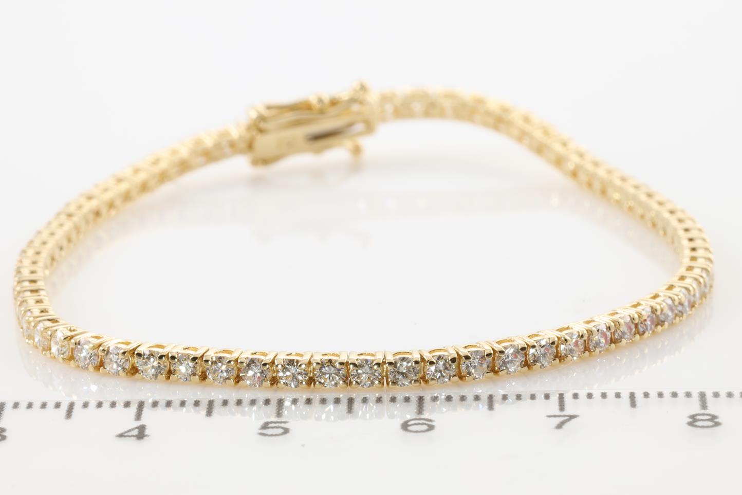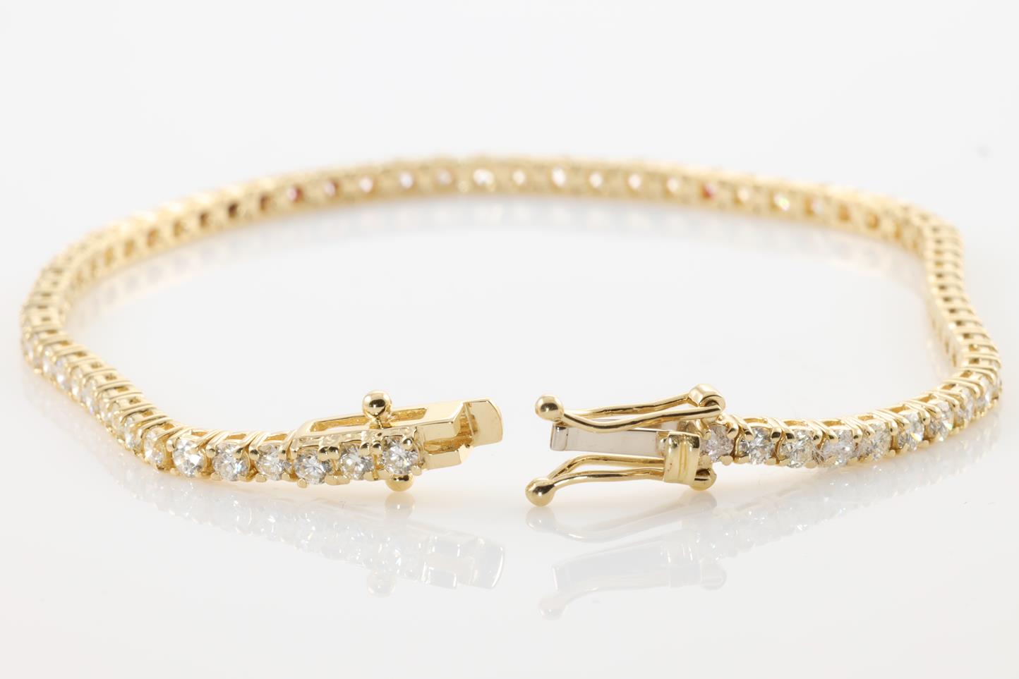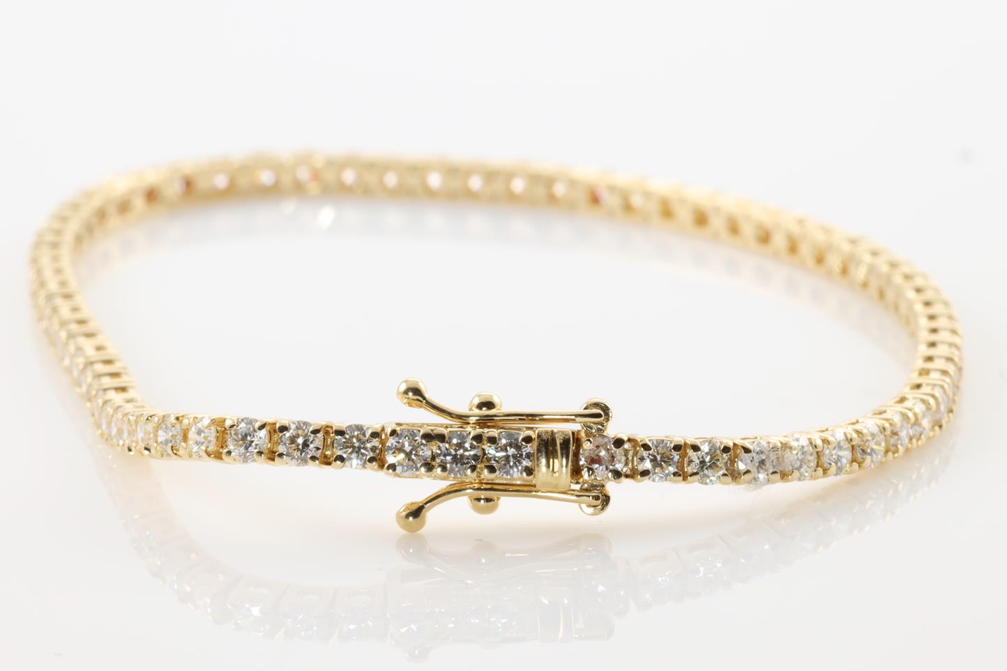 Diamond tennis bracelet with 69 round Diamonds totalling 2.99cts (Estimated grading: I-J SI). 18ct Yellow gold. Length: 18cm. With certificate #413818 Weight: 8.4g (New)