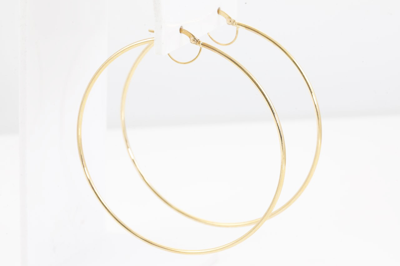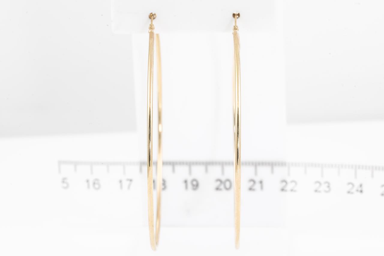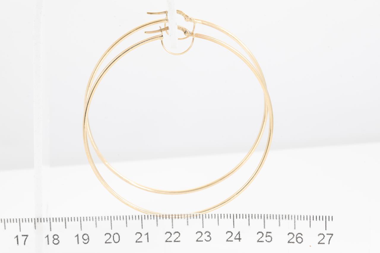 3 Pairs of Hoop Earrings, hollow, 9ct tricolour gold. Dent. Diameter 6cm. Weight 5.7g. (Pre-owned)