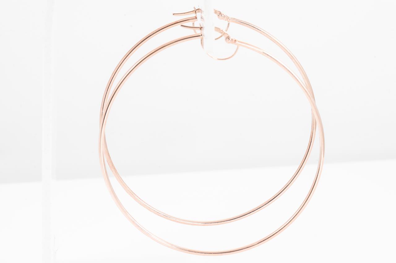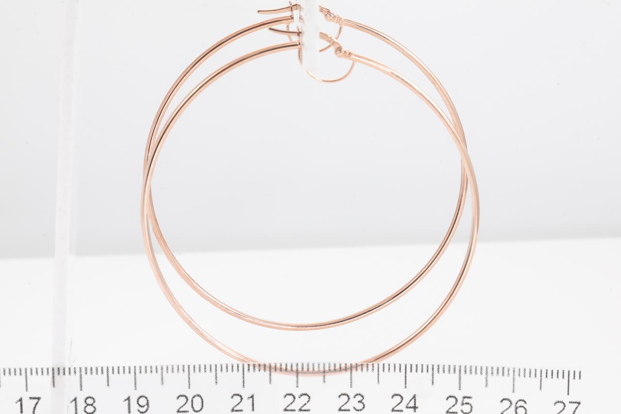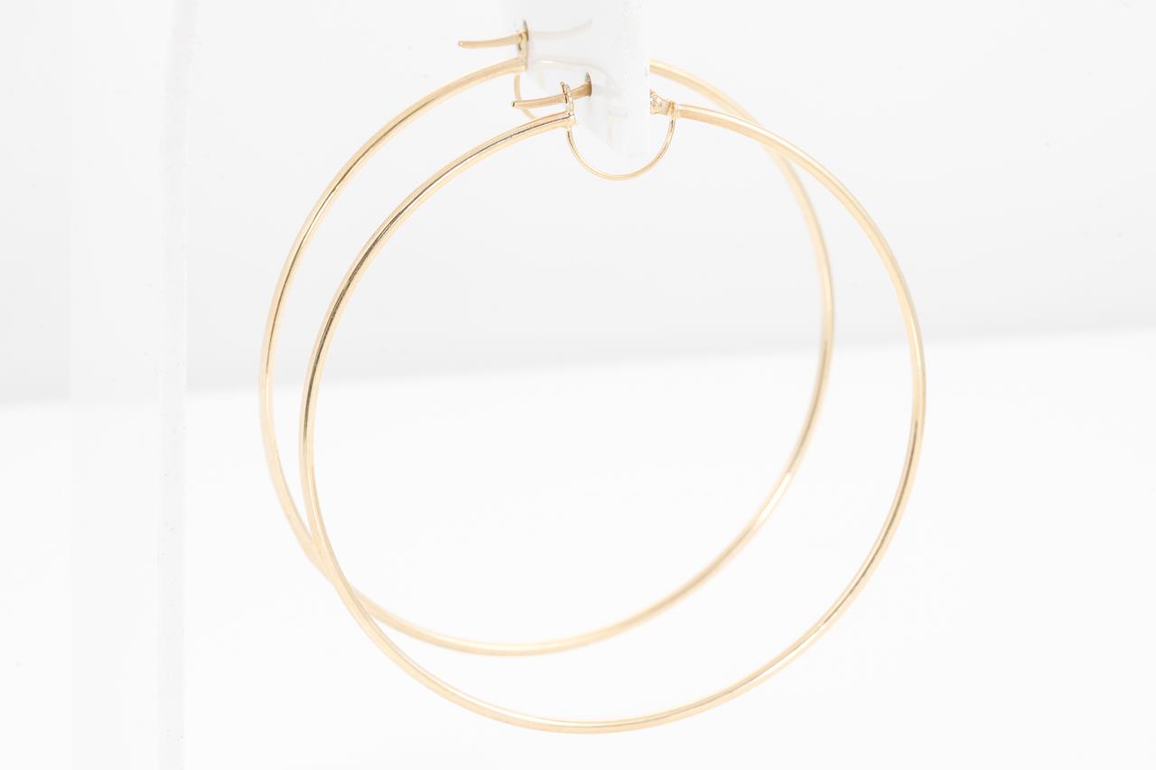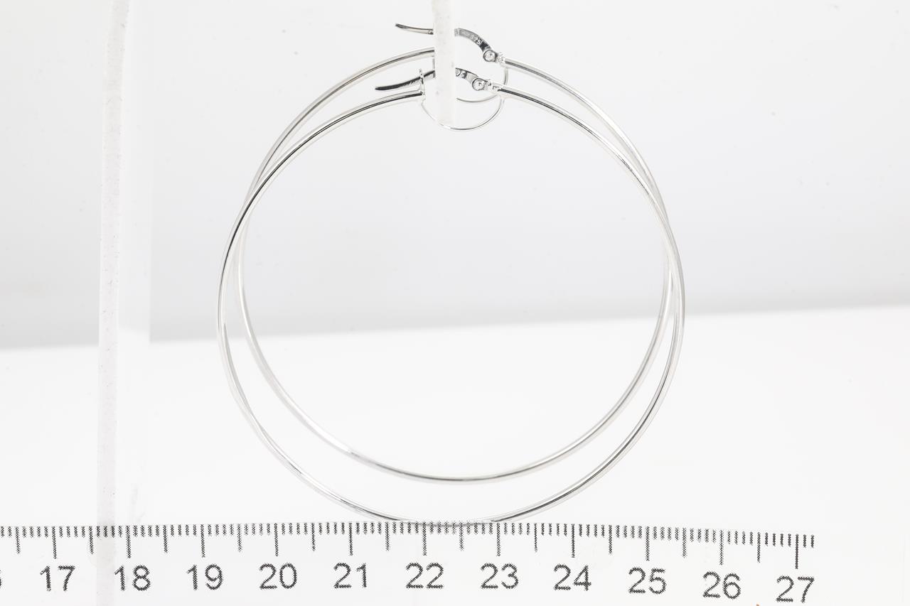 3 Pairs of Hoop Earrings, hollow, 9ct tricolour gold. Dent. Diameter 6cm. Weight 5.7g. (Pre-owned)