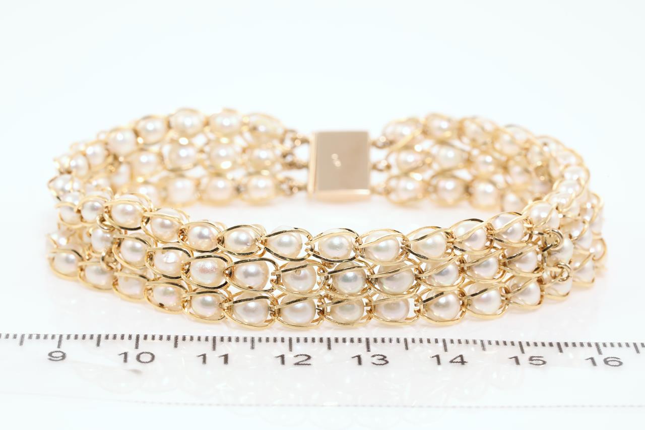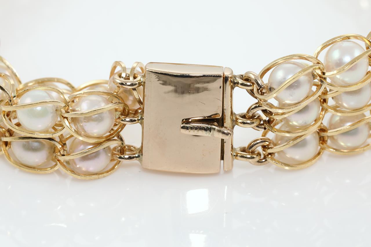 Pearl bracelet with cultured Pearls of approximately 4.6mm diameter. 18ct yellow gold. 18ct yellow gold. Length: 21cm. Weight: 29.0g (Pre-owned)