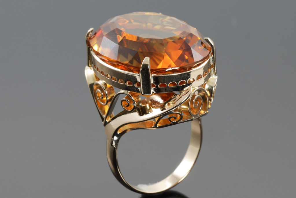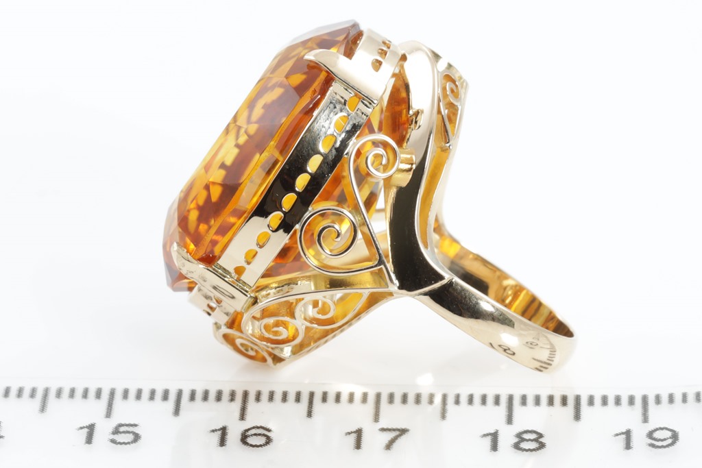 Citrine Ring with Citrine of approximately 30.00ct. 18ct yellow gold. Ring size: L1/2. Weigth: 15g. (Pre-owned)