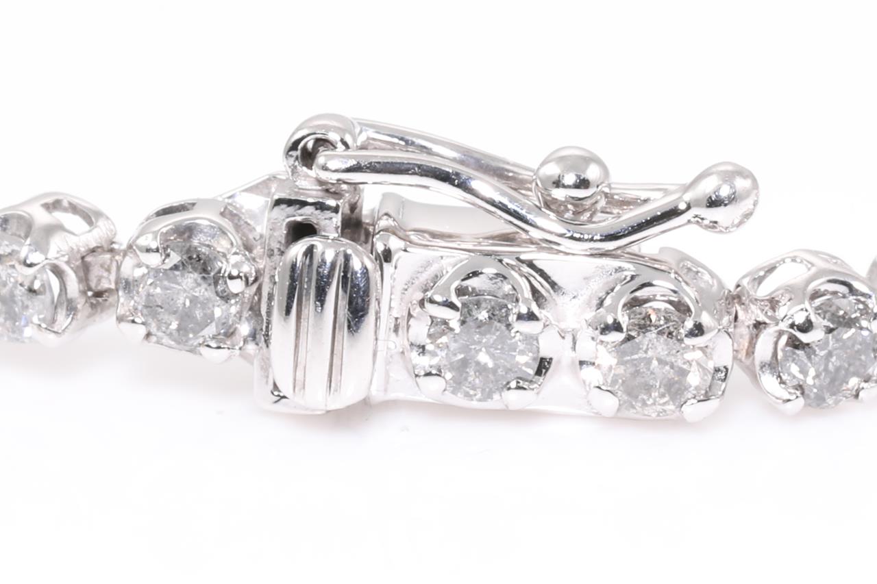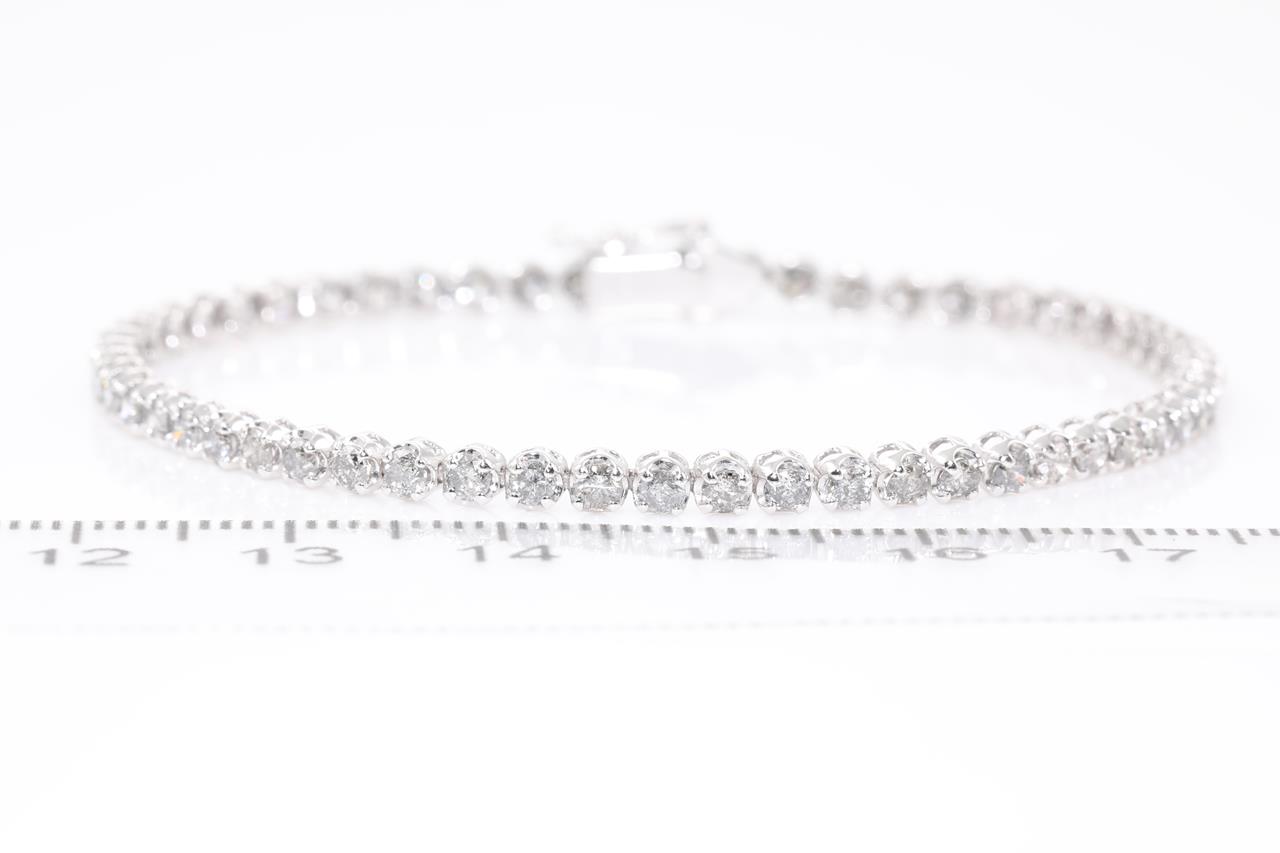 Diamond Tennis bracelet with round Diamonds totalling 3.00cts (Estimated grading: H-I P3). 18ct white gold. Length: 17.5cm. Weight: 5.5g (Pre-owned)