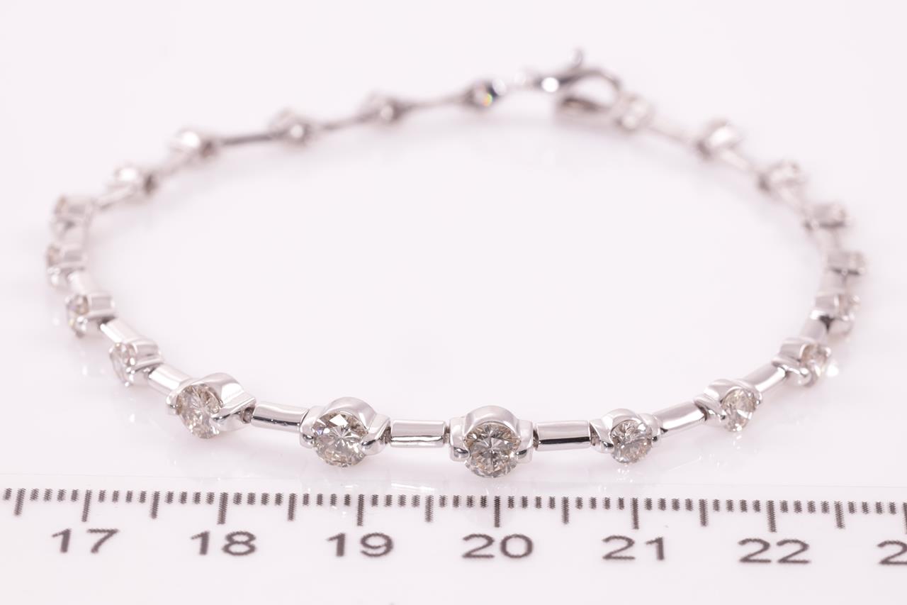 Diamond Bracelet with 21 round graduated Diamonds totalling 3.00cts (Estimated grading: J-K SI1-P2). 18ct white gold. Length: 20.5cm Weight: 10.4g (Pre-owned)