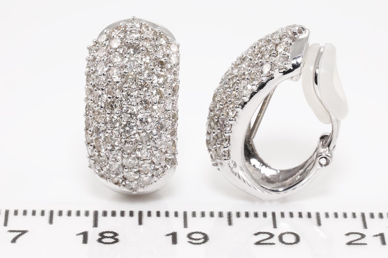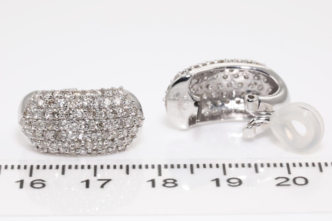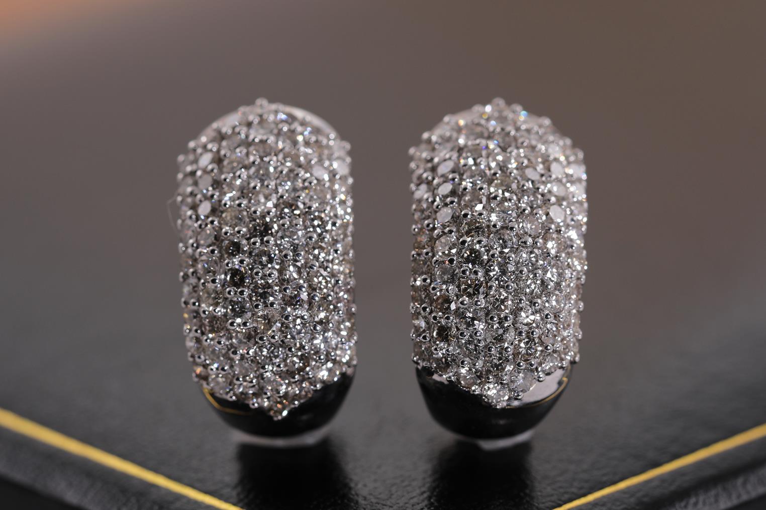 Diamond clip-on Earrings (with folding posts - for pierced and non pierced ears) with round shaped Diamonds totalling 3.00cts (Estimated grading: I-J SI). 18ct yellow gold. Weight: 9.6g. With Certificate #414940. (Pre-owned)