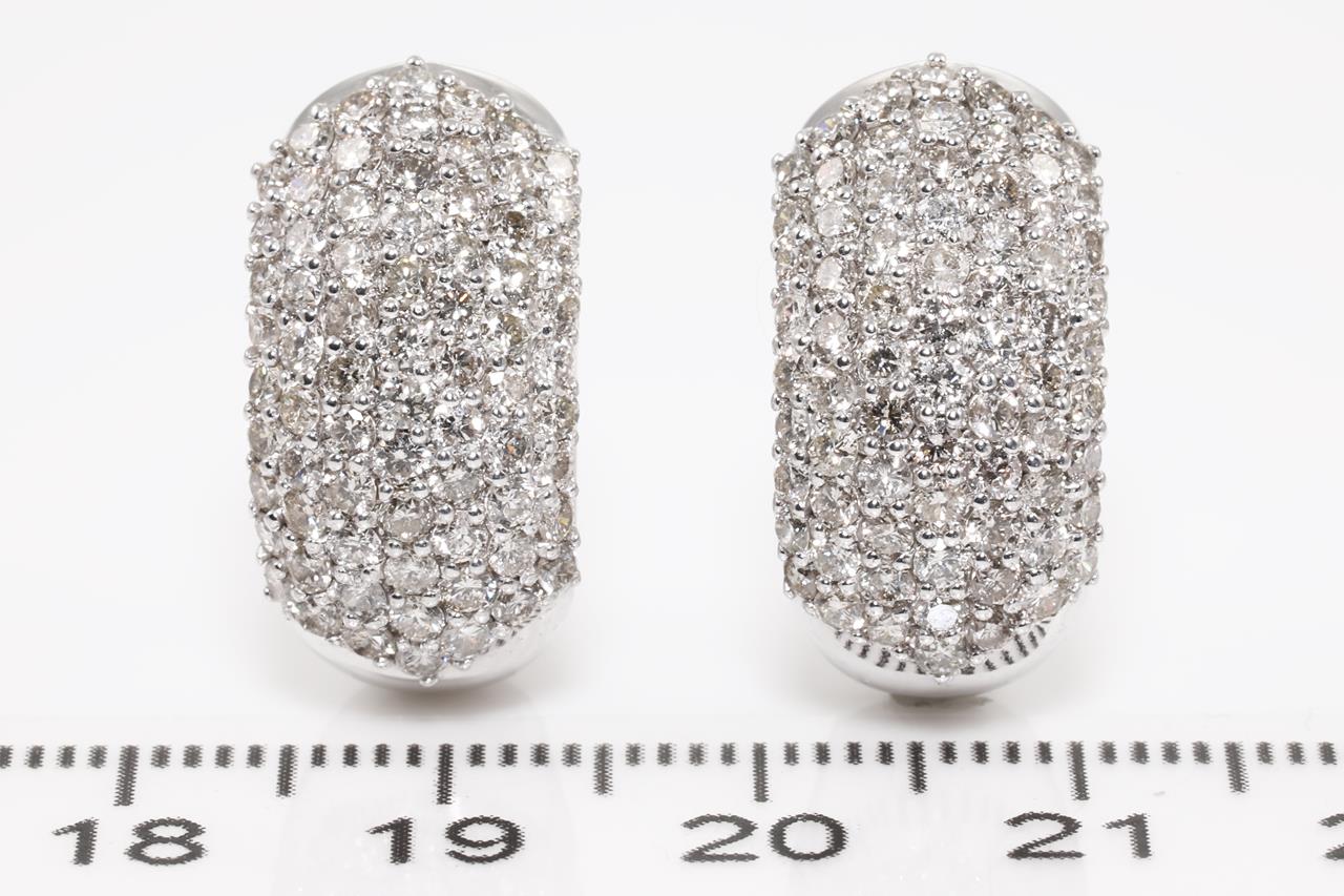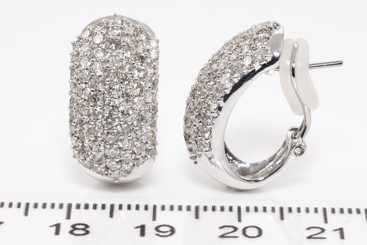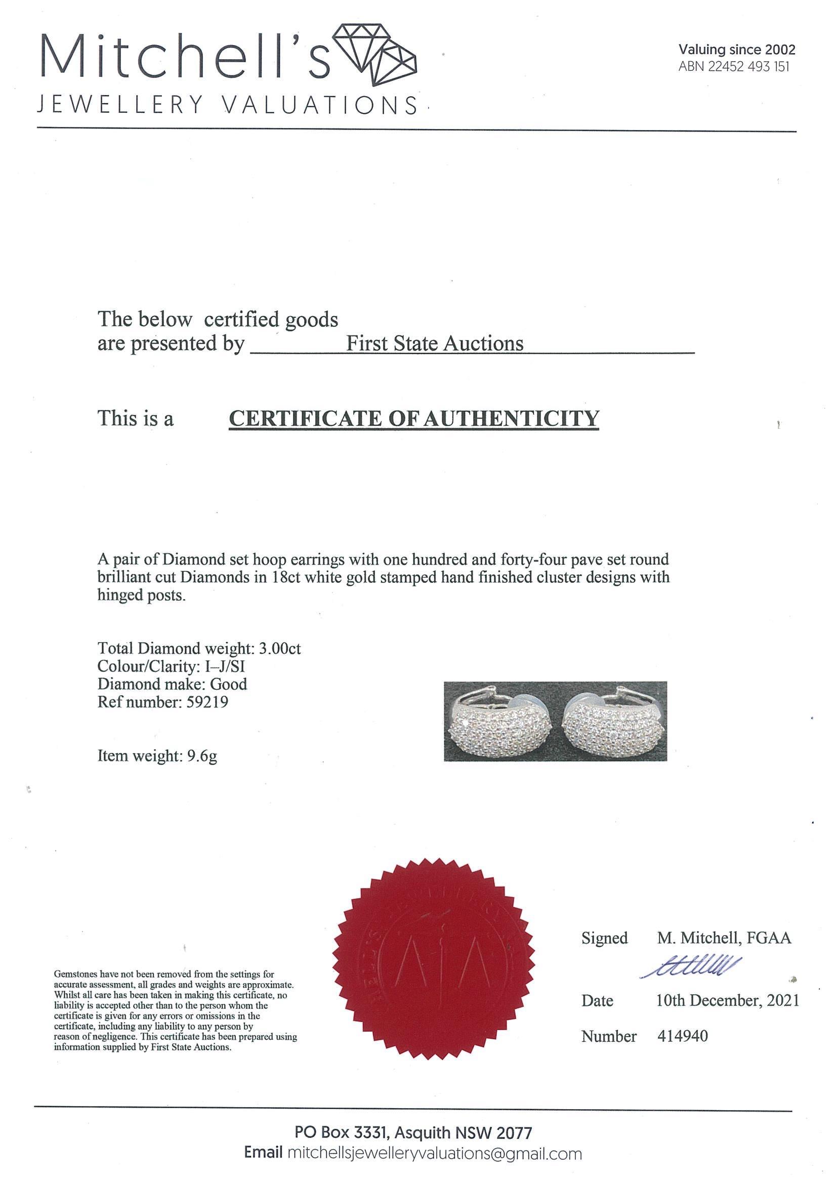 Diamond clip-on Earrings (with folding posts - for pierced and non pierced ears) with round shaped Diamonds totalling 3.00cts (Estimated grading: I-J SI). 18ct yellow gold. Weight: 9.6g. With Certificate #414940. (Pre-owned)