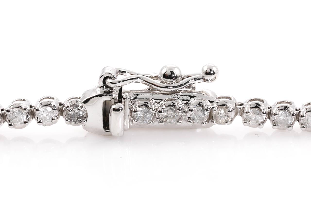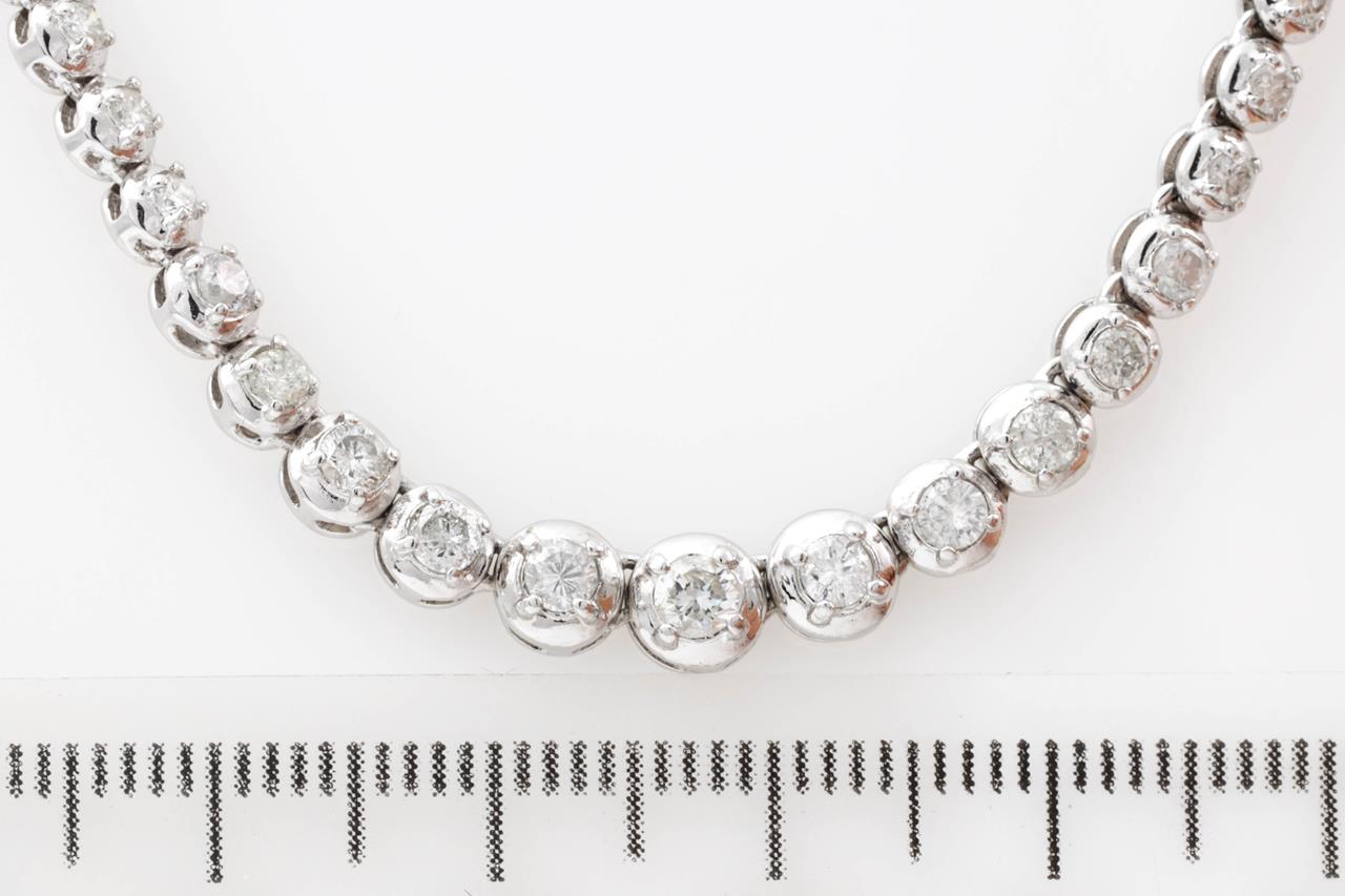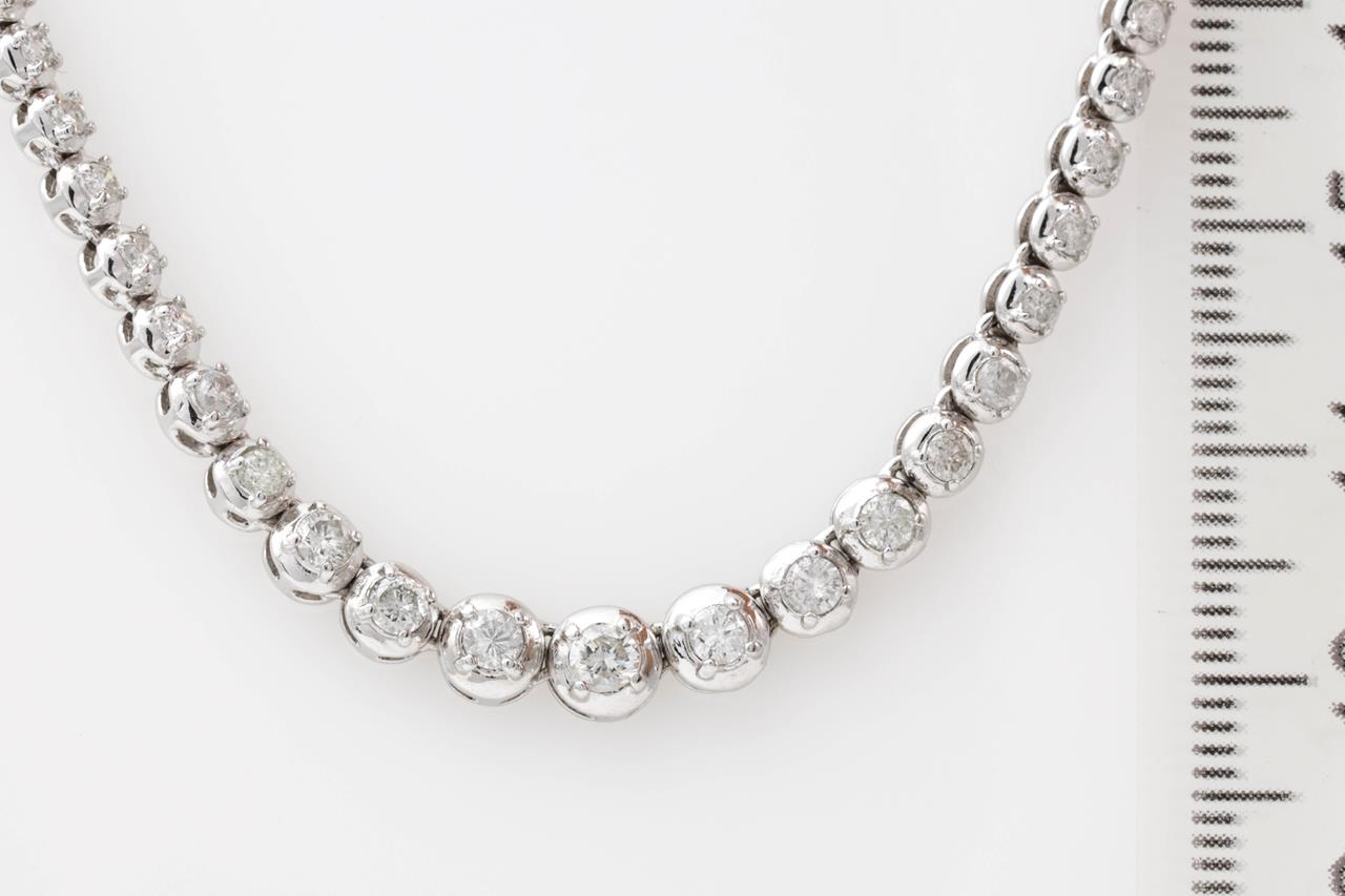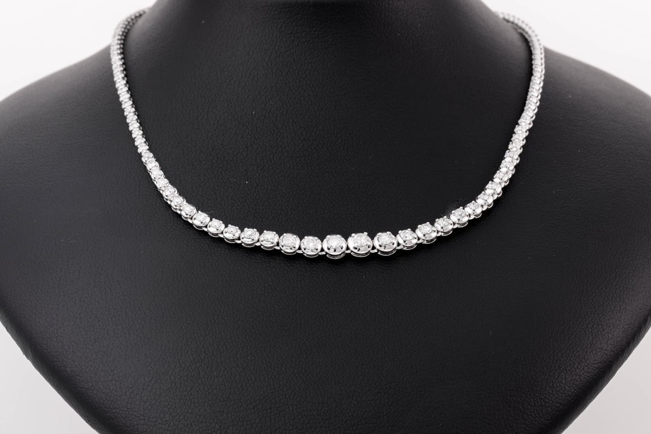 Diamond tennis necklace with 68 round Diamonds totalling 3.00cts (Estimated grading: G-H SI-P1). Platinum. Length: 43cm. Weight: 19.1g. With certificate #TBA. (Pre-owned)