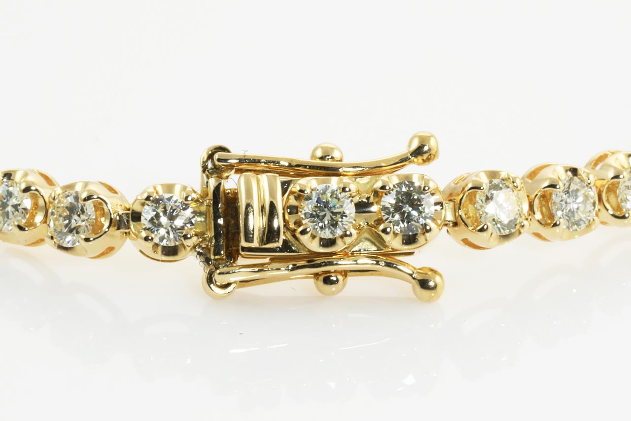 Diamond bracelet with round Diamonds totalling 3.00cts. (Estimated grading: L-M VS-SI). 18ct yellow gold. Length: 16cm. Weight: 8.5g. (Pre-owned)