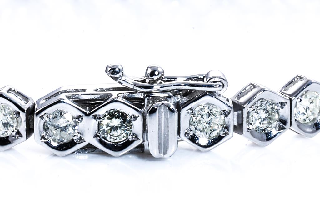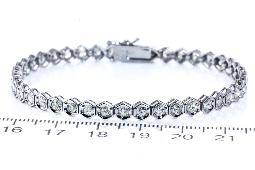 Diamond tennis bracelet with 42 round Diamonds totalling 3.00cts (Estimated grading: K-L P1-P2). 18ct white gold. Length: 18cm. Weight: 8.9g. (Pre-owned)